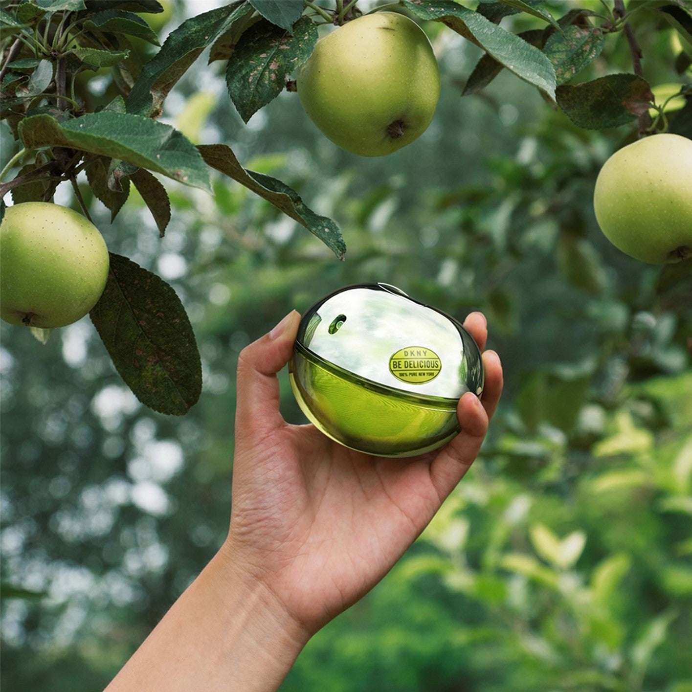 DKNY Be Delicious EDP smells like a fresh blend of juicy apple, crisp cucumber, and a hint of delicate white muguet.