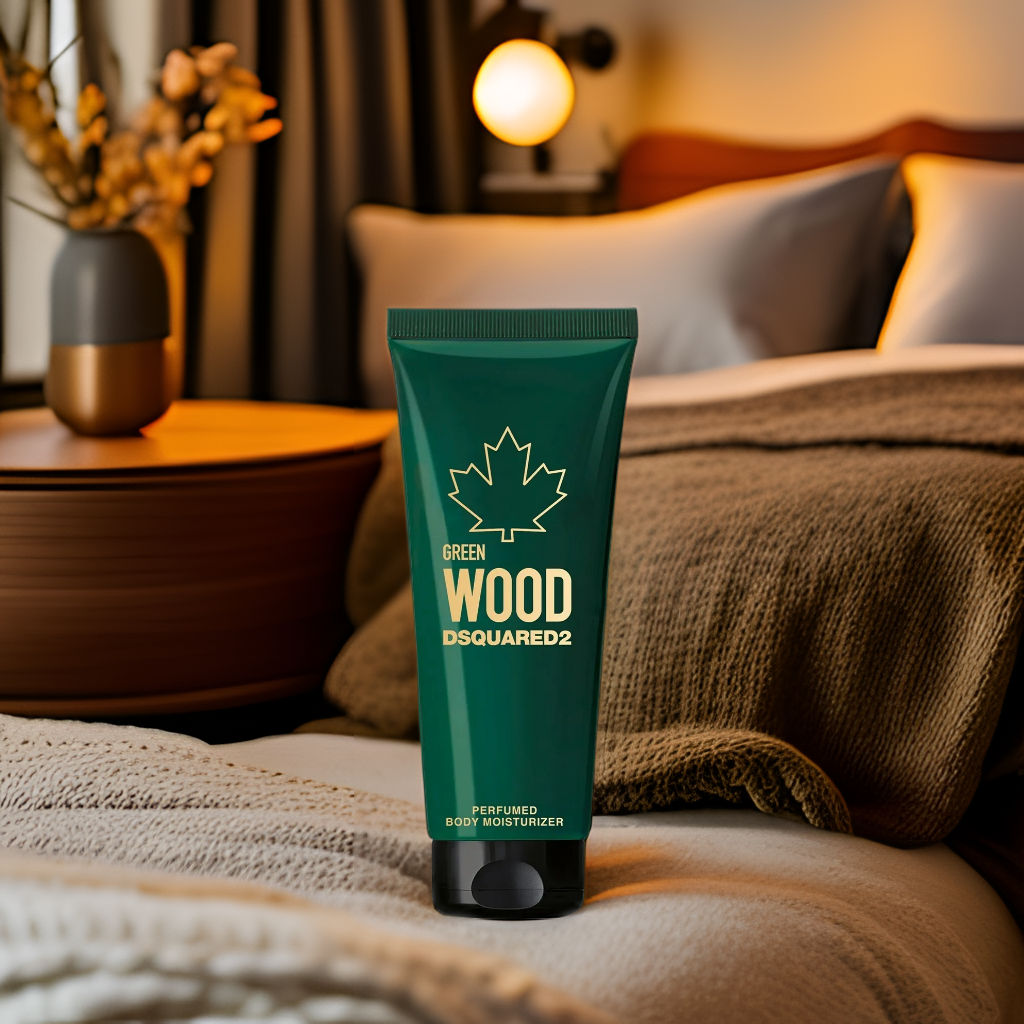 Dsquared2 Green Wood Body Lotion smells like the fresh, invigorating essence of the forest, capturing the essence of nature's vitality and masculine energy.