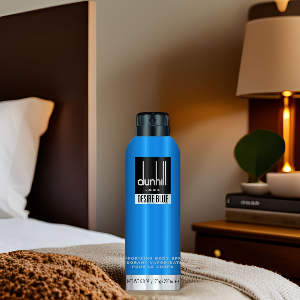 Embark on an olfactory voyage with the invigorating Dunhill Desire Blue Deodorant Body Spray.
