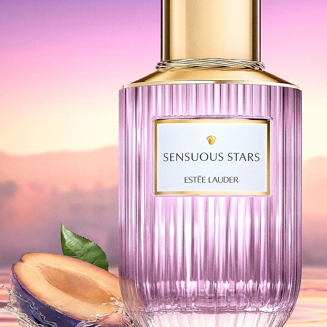 Estee Lauder Sensuous Stars EDP smells like a blend of sweet Chinese plum, earthy notes, and floral French iris with a fruity chypre essence.