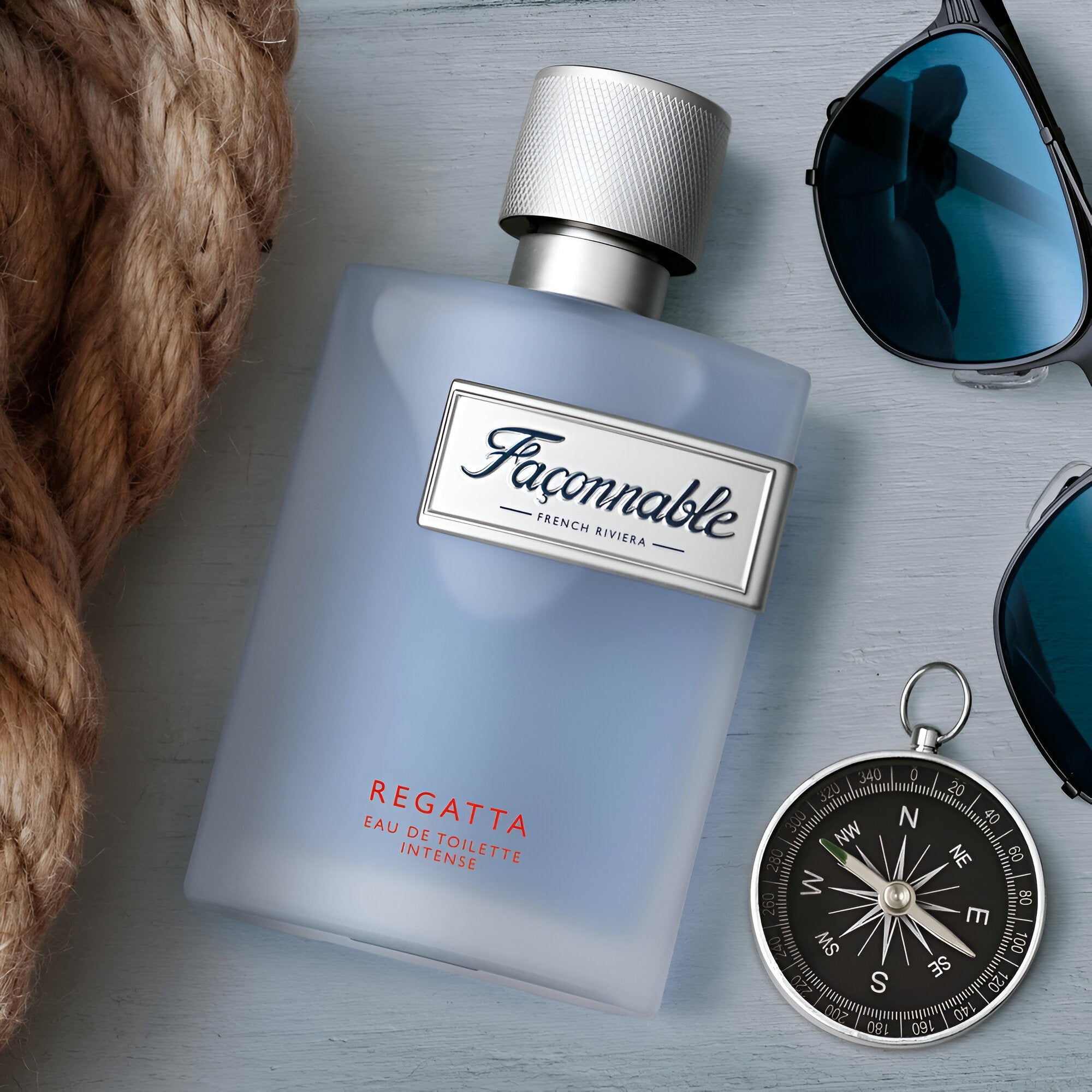 Faconnable Regatta EDT Intense smells fresh and sporty, combining zesty citrus and aquatic notes with warm woodsy scents like sandalwood and oakmoss, giving it an adventurous and masculine feel.