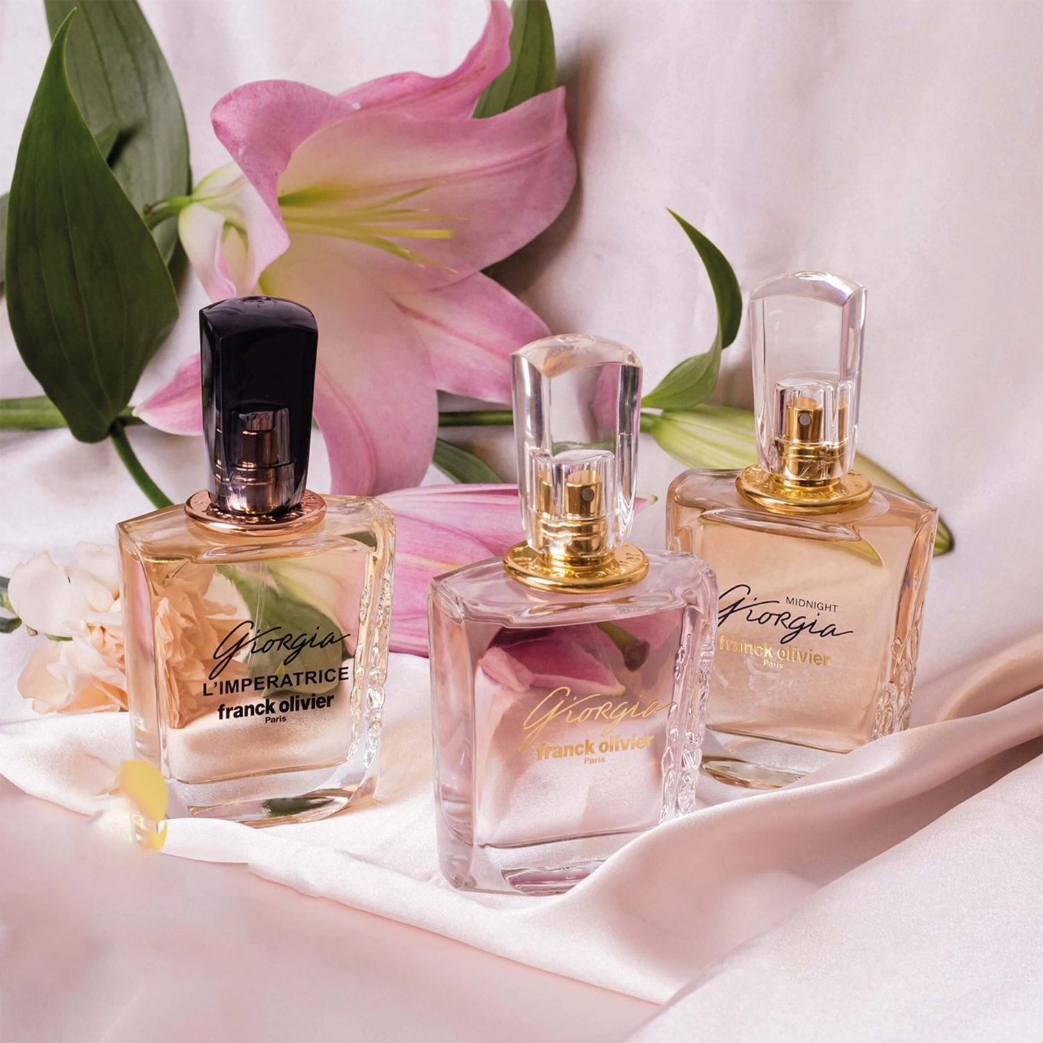 Discover the enchanting allure of Franck Olivier's Giorgia Midnight EDP, a scent that captures the essence of midnight romance.