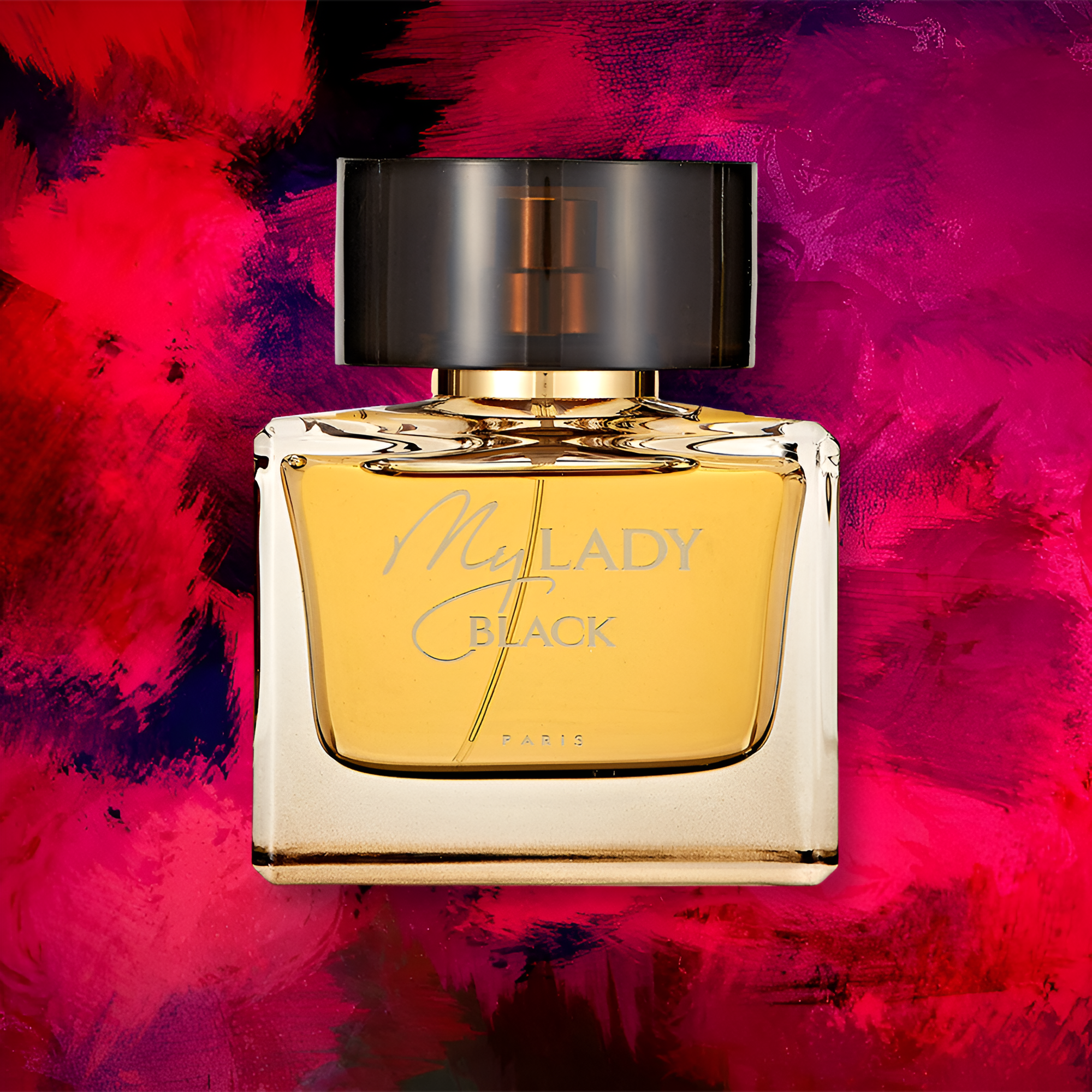 Geparlys My Lady Black EDP smells like a captivating blend of fresh fruity and floral notes, enhanced with warm woody and musky undertones.