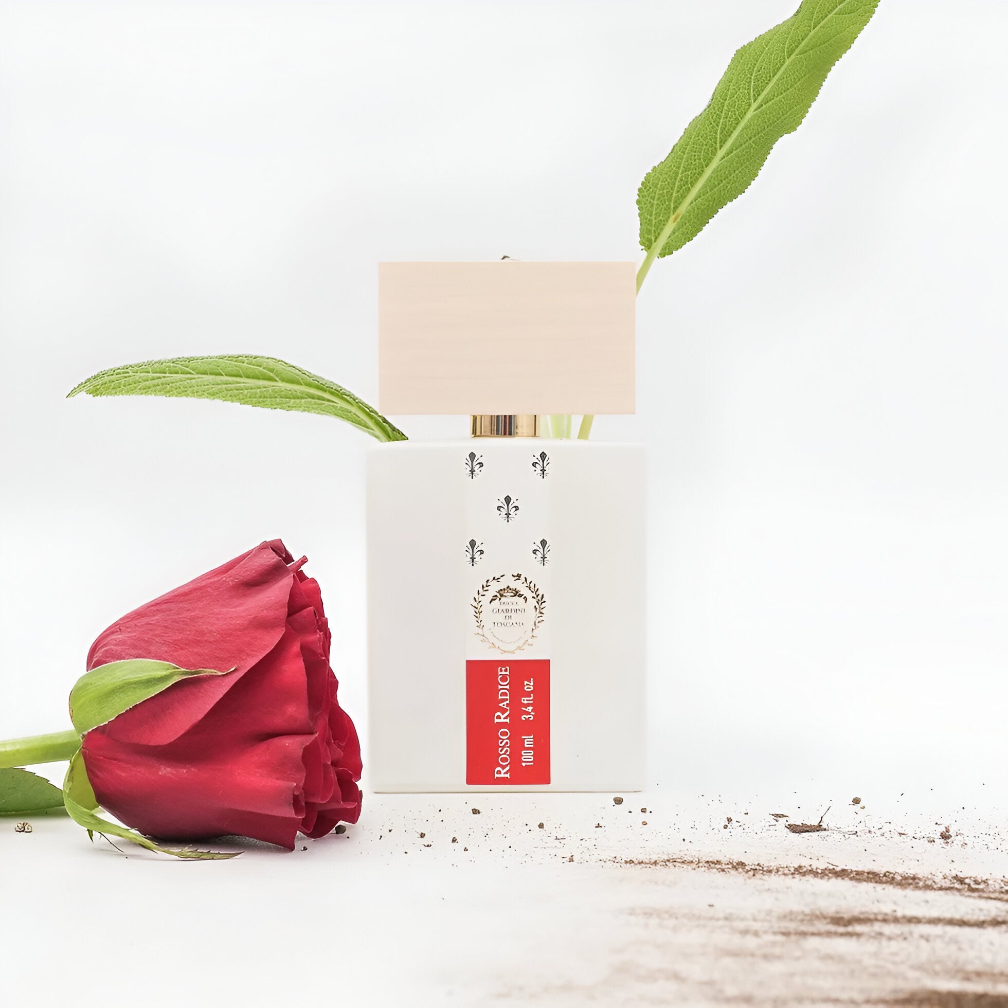 Giardini Di Toscana Rosso Radice EDP smells like a vibrant Tuscan garden, with fresh bergamot at the start, earthy vetiver and oak moss at its heart, and rich coumarin undertones that evoke the beauty of nature.