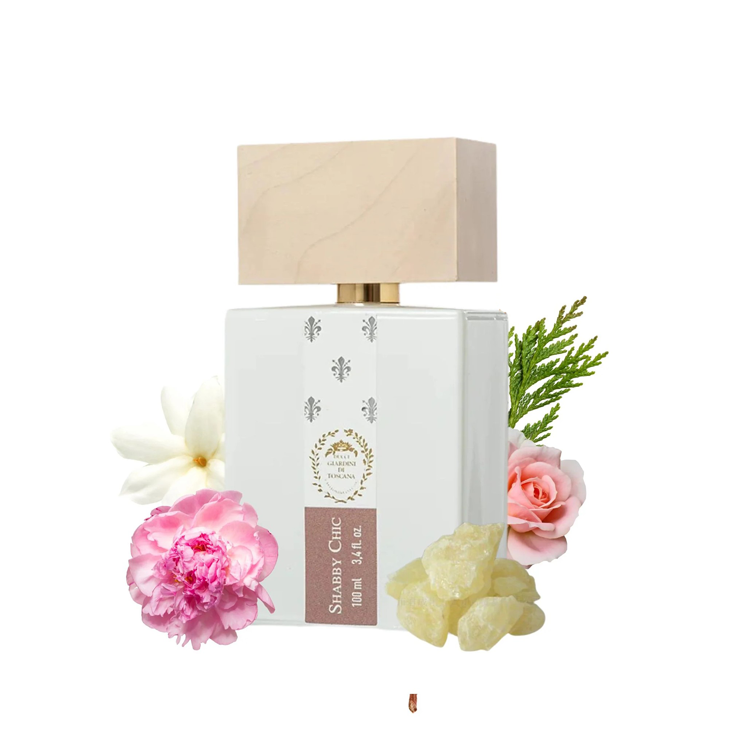 Giardini Di Toscana Shabby Chic EDP is a floral-fresh celebration of nature’s beauty. Inspired by the enchanting gardens of Tuscany, this fragrance captures the essence of eco-luxury.
