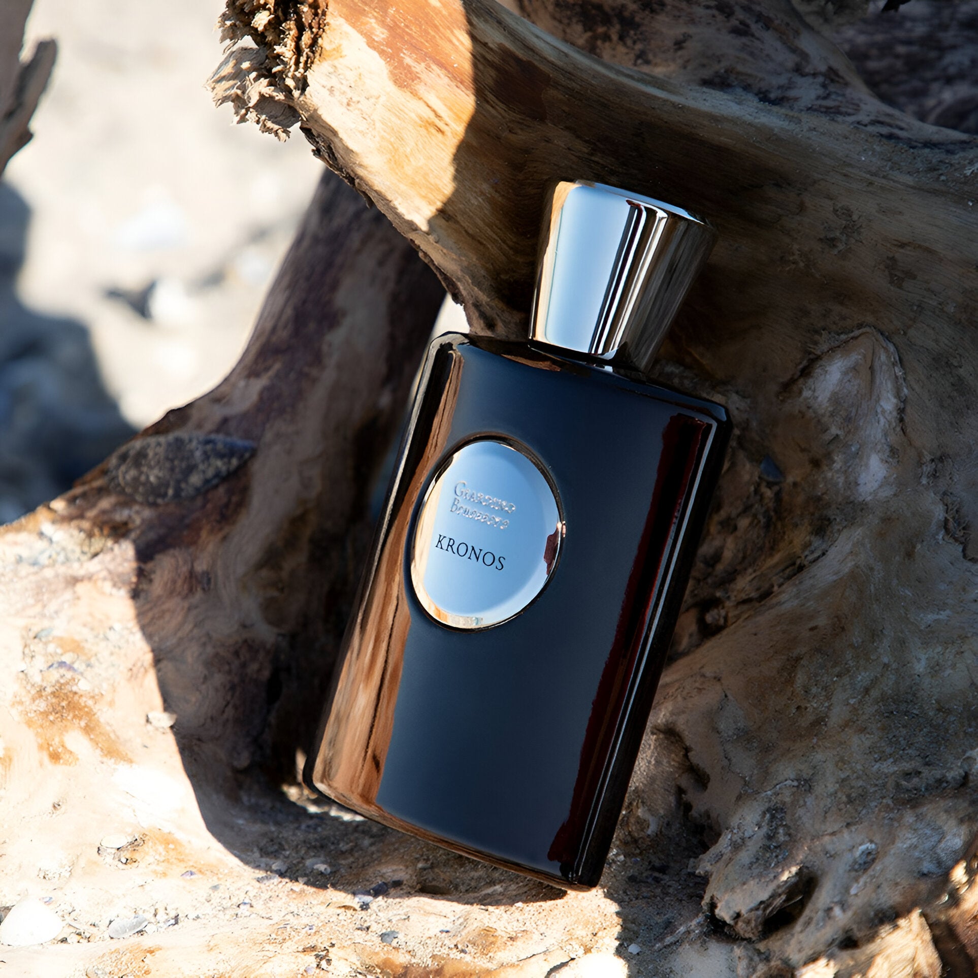Giardino Benessere Kronos Extrait De Parfum offers a unique, spicy, floral, and powdery aroma crafted by Paolo Terenzi, drawing inspiration from the timeless Kronos and nature's elemental forces for a deeply captivating and non-traditional scent experience.