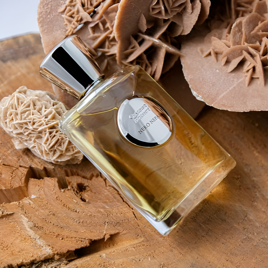Giardino Benessere Nero Nepal EDP is a woody and aromatic scent with a 70s flower power vibe, featuring rich notes of oud, cedarwood, and ambergris, created by Paolo Terenzi in 2020 to offer a therapeutic, nature-inspired olfactory journey.