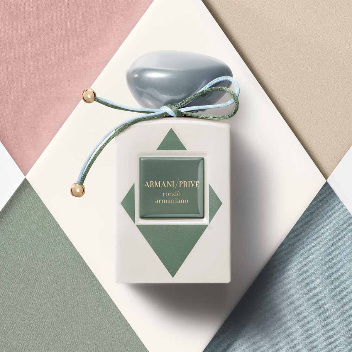 Giorgio Armani Prive Rondo Armaniano EDP smells like a joyful blend of lavender and sweet rose, wrapped in a warm amber fougère, capturing the vibrant essence and colorful spirit of the SS23 collection.