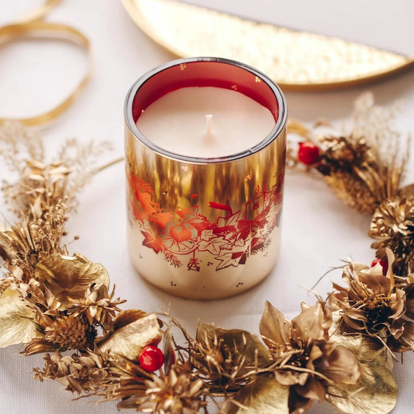 The Goutal Forest D'Or Candle fills the air with the cozy essence of pine trees and citrusy splashes of oranges and mandarins, like a festive forest brought home.