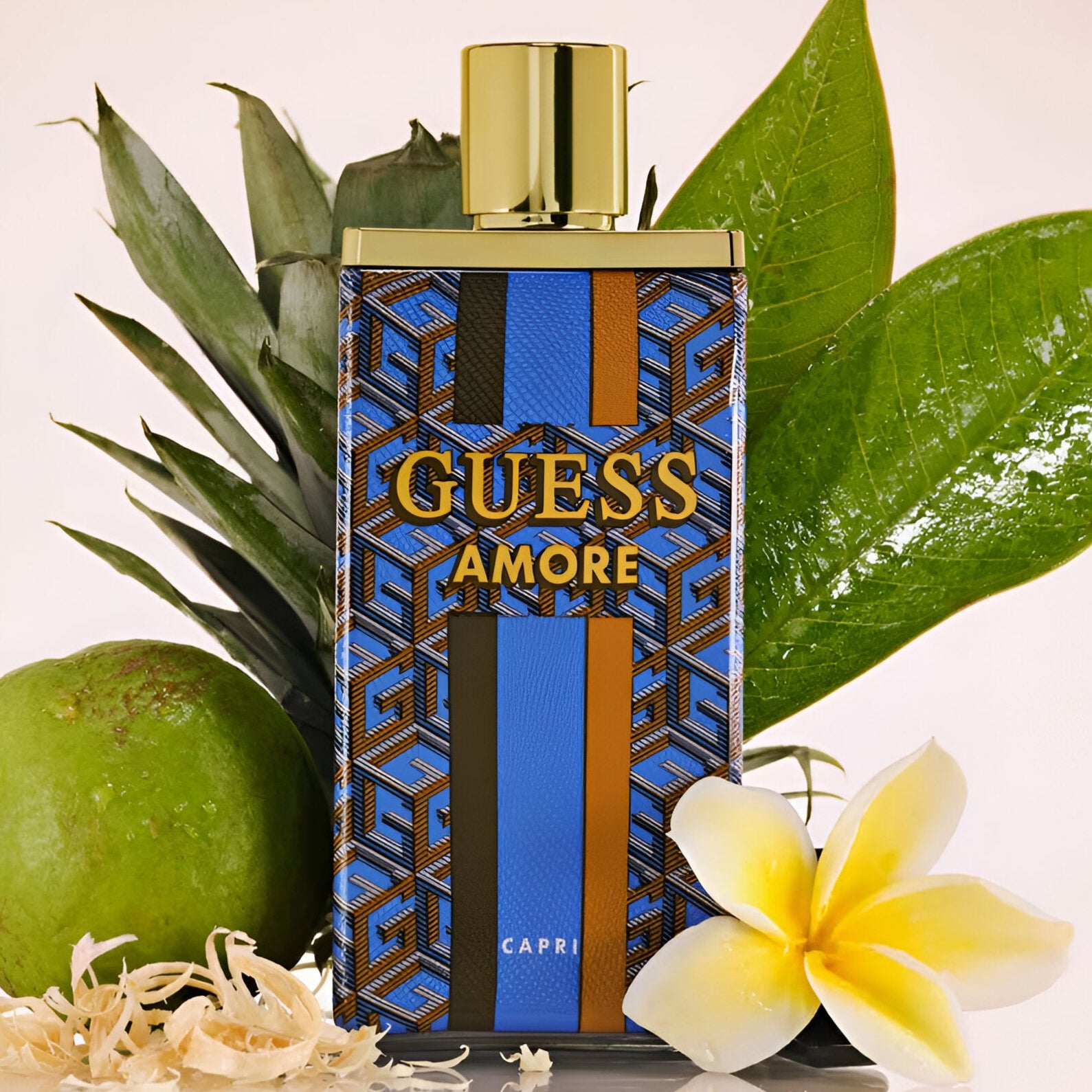 Guess Amore Capri EDT smells like a refreshing blend of floral and woody notes, infused with zesty citrus and hints of Italian cypress, capturing the vibrant beauty and invigorating essence of the stunning landscapes of Capri.
