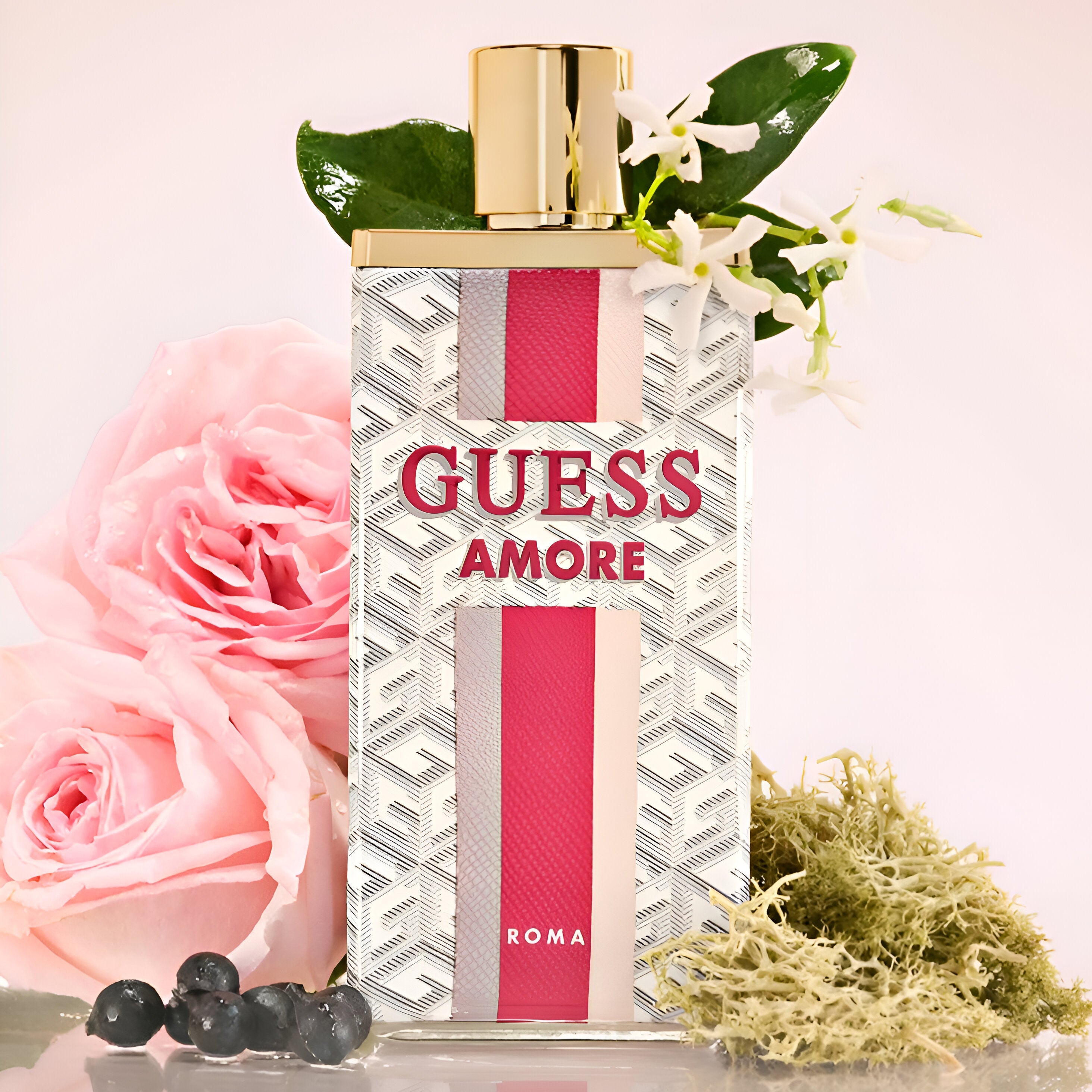 Guess Amore Roma EDT smells like a refreshing and elegant blend of bright citrus and Italian cypress, with a floral heart of geranium, capturing the essence of love and adventure in a modern yet timeless way.
