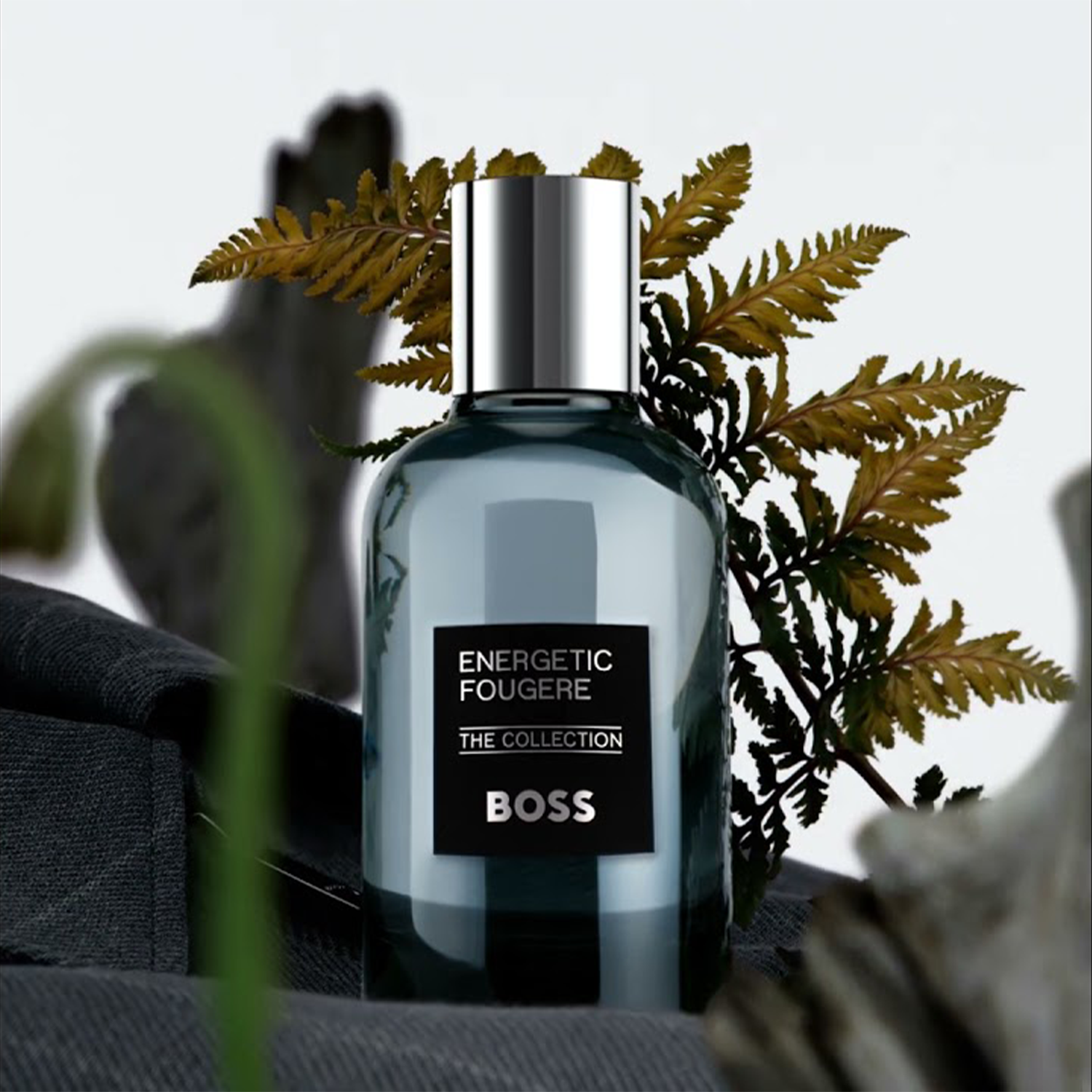 Hugo Boss Boss The Collection Energetic Fougere EDP smells fresh and sophisticated, combining sweet herbal notes like angelica and geranium with warm woody scents of sandalwood and cedarwood, creating an uplifting and elegant fragrance.