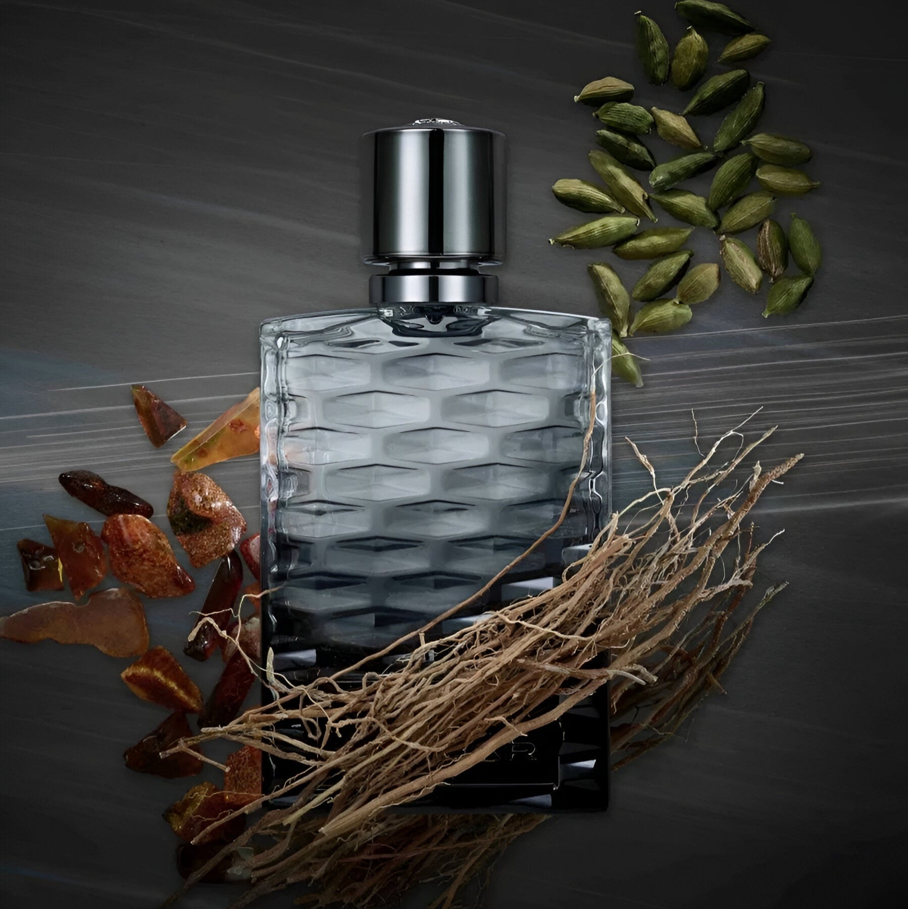 - Velvety-spicy heart with Cashmere Wood and Vetiver