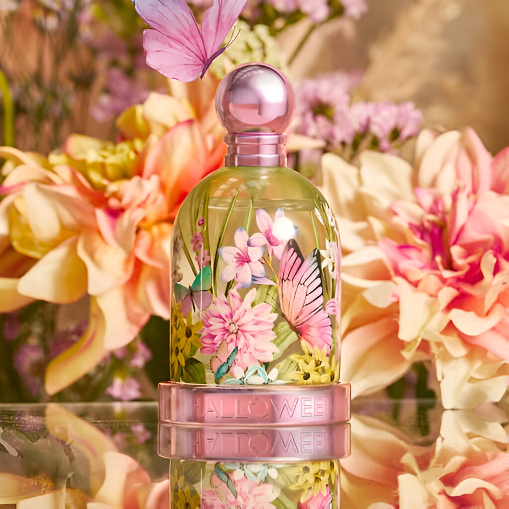 Jesus Del Pozo Halloween Bliss EDT smells floral and fruity, with notes of violet, peony, and banana leaf, creating a fresh and enchanting scent that feels feminine and free.