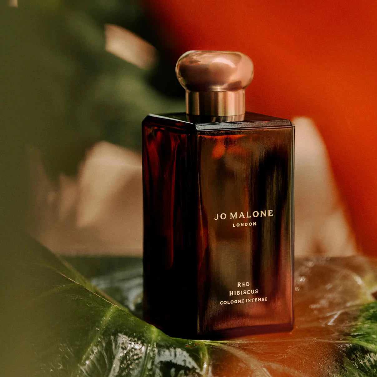 Jo Malone Red Hibiscus Cologne Intense smells like a vibrant and exotic blend of tropical flowers, with the sweet and refreshing essence of hibiscus at its heart, complemented by hints of juicy fruit and warm spices.