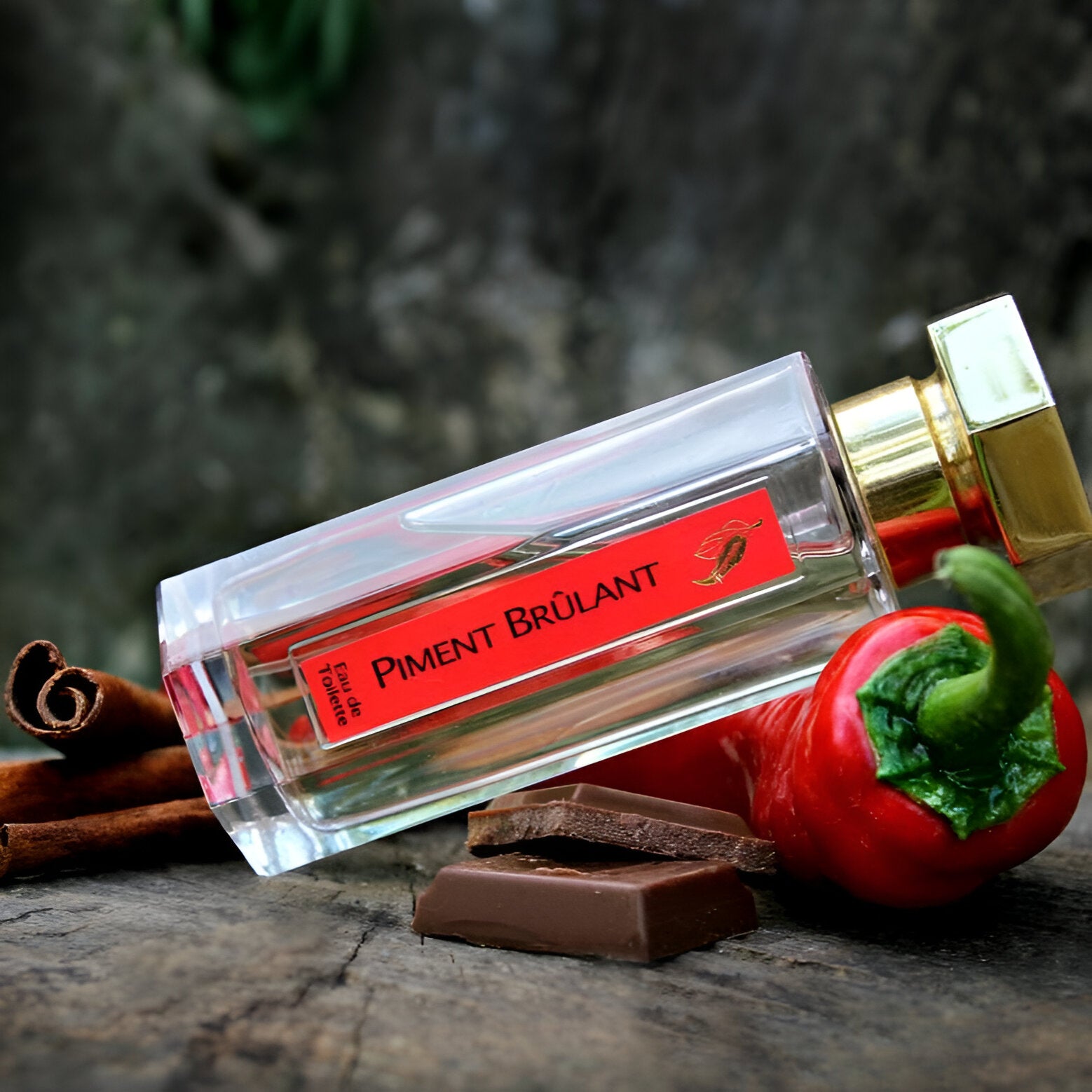 L'Artisan Parfumeur Piment Brulant EDT smells like a warm, spicy blend of cocoa, vanilla, and clove, with a captivating kick of fresh chili pepper and subtle floral undertones.
