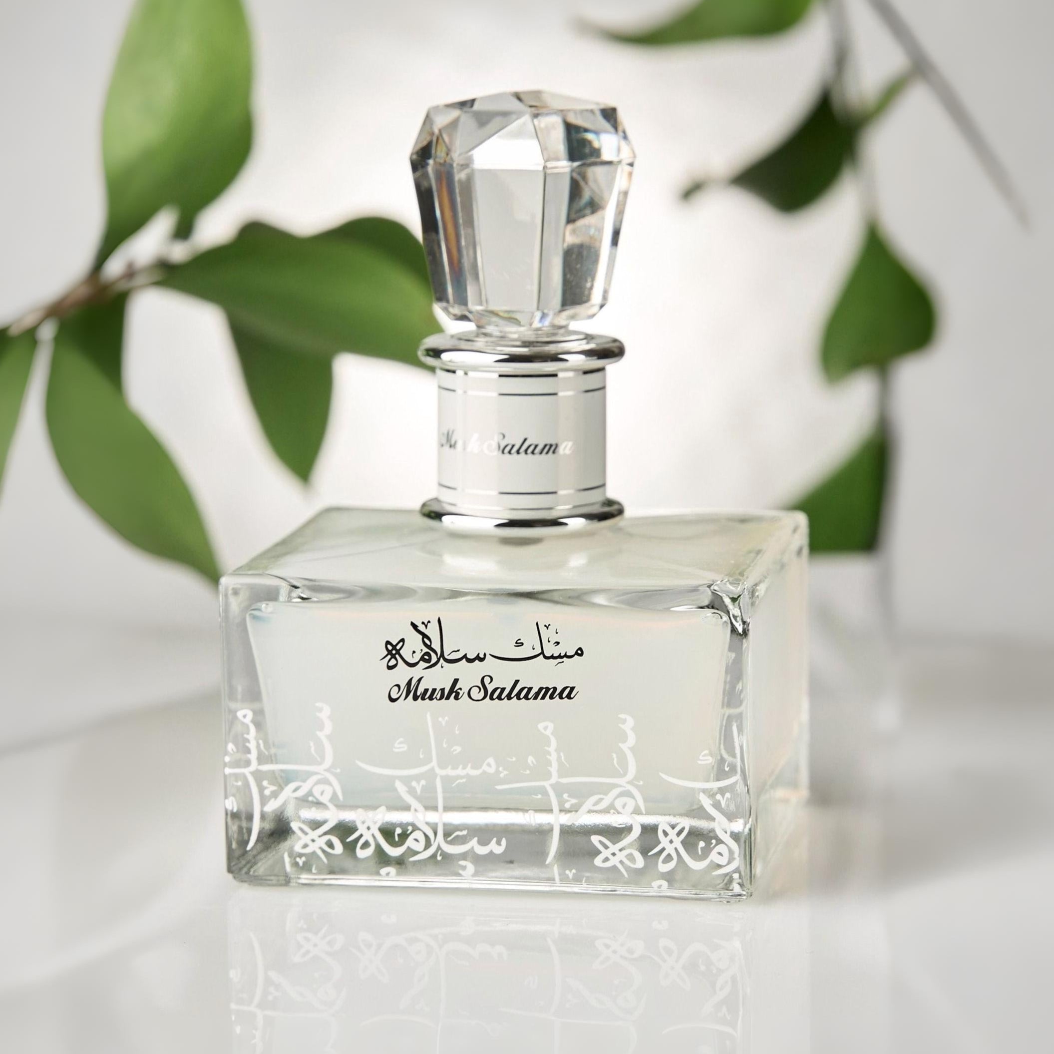 Lattafa Musk Salama EDP smells fresh and fruity with a soft musk base, featuring notes of white musk, sweet fruits, warm amber, and a hint of wood and leather.