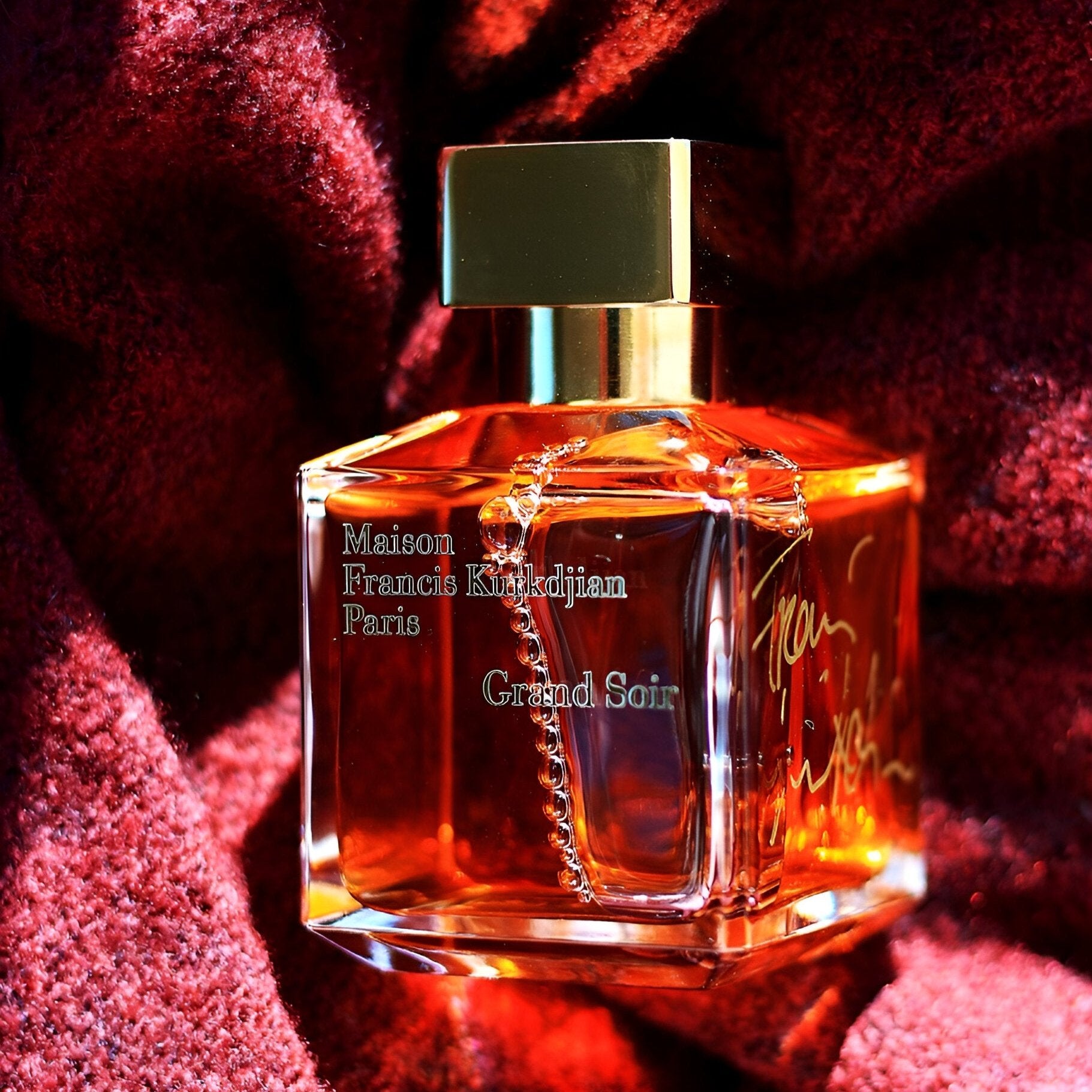 Maison Francis Kurkdjian Grand Soir EDP smells warm and luxurious with rich notes of amber, vanilla, and tonka bean, creating a cozy and sophisticated scent that's perfect for evening wear.
