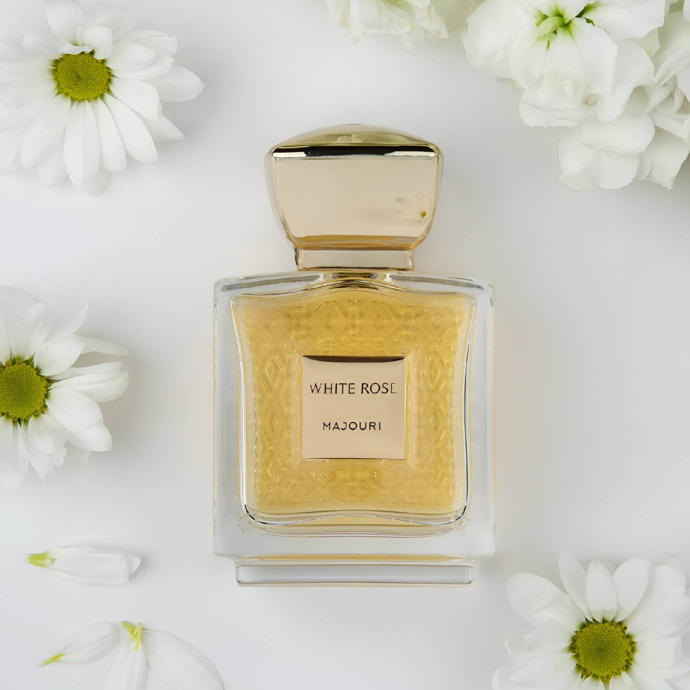 Indulge in the exquisite charm of Majouri's White Rose perfume, crafted for the modern woman.