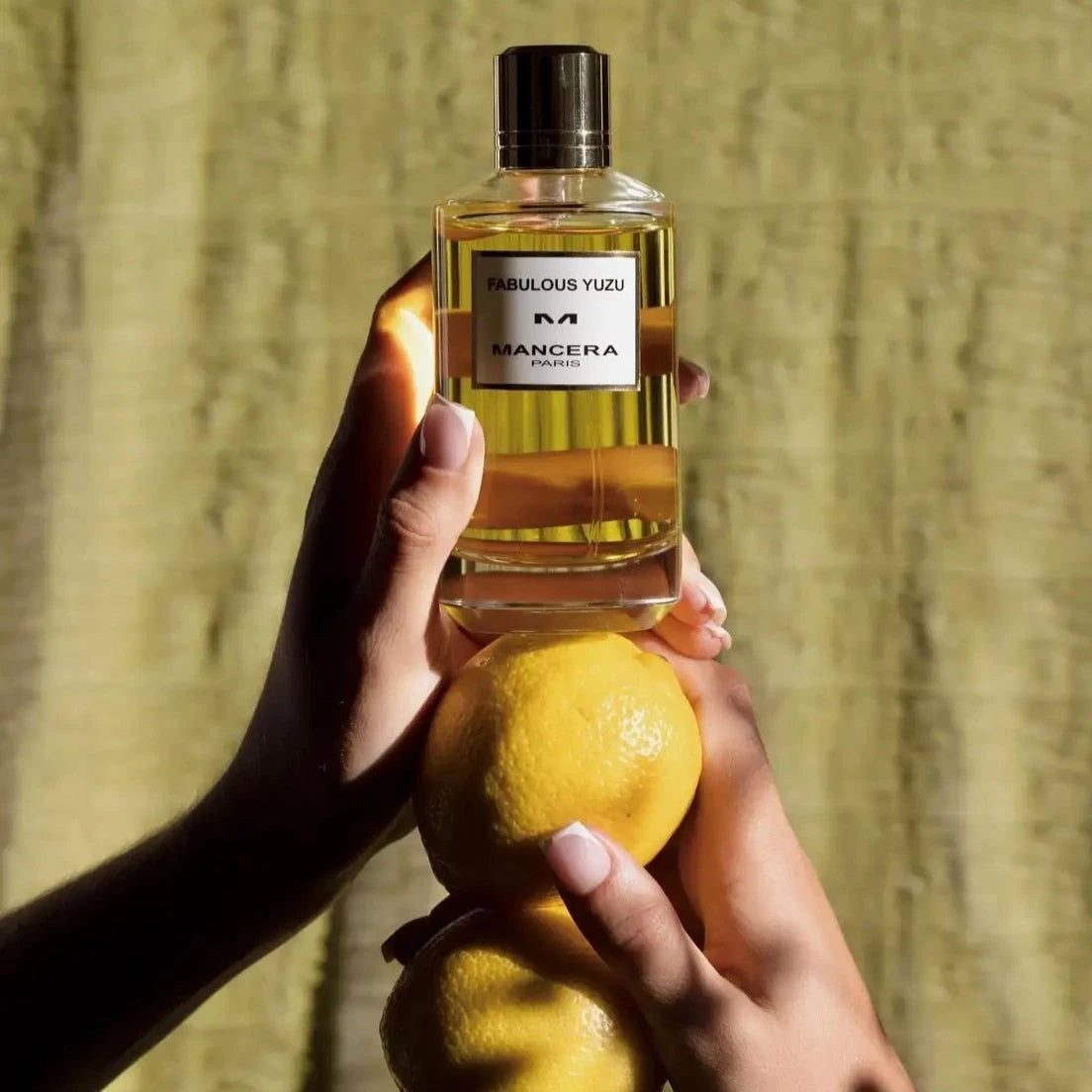 Mancera Fabulous Yuzu EDP smells like a vibrant blend of rich and tangy yuzu, with fruity undertones and a warm, woody base of sandalwood and tonka bean, creating a unique and luxurious fragrance.