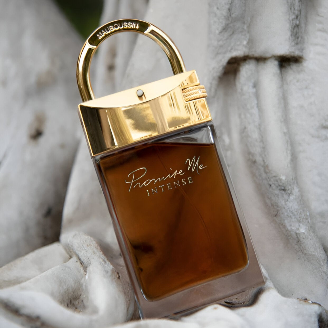 Mauboussin Promise Me Intense EDP smells like a luxurious mix of woody and fruity notes with a touch of floral elegance, perfect for confident women who want to make a memorable impression.