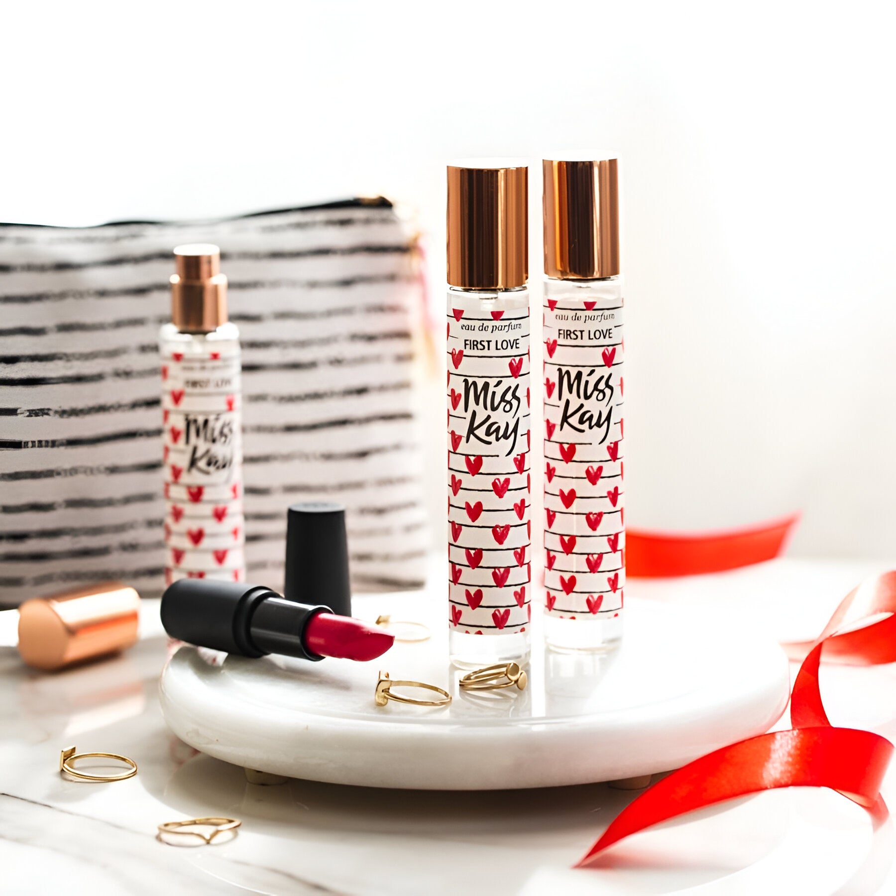 Indulge your senses with Miss Kay First Love, a fragrance that tells a story of love's delightful beginnings. Every spritz evokes warmth and nostalgia, perfect for your everyday adventures.
