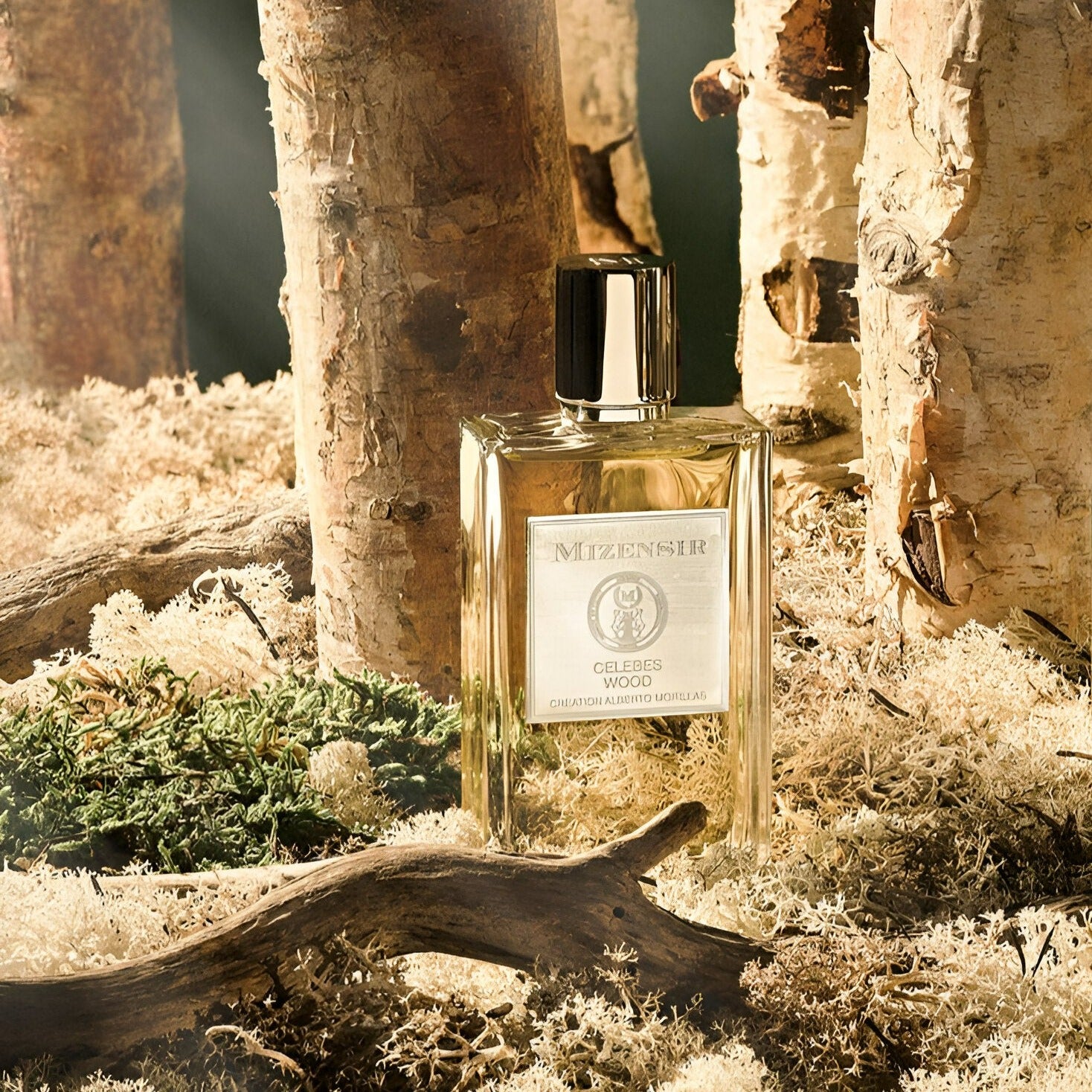 Mizensir Parfums Celebes Wood EDP exudes a luxurious blend of exotic spices and dense woods, evoking the untamed spirit of Celebes Island.