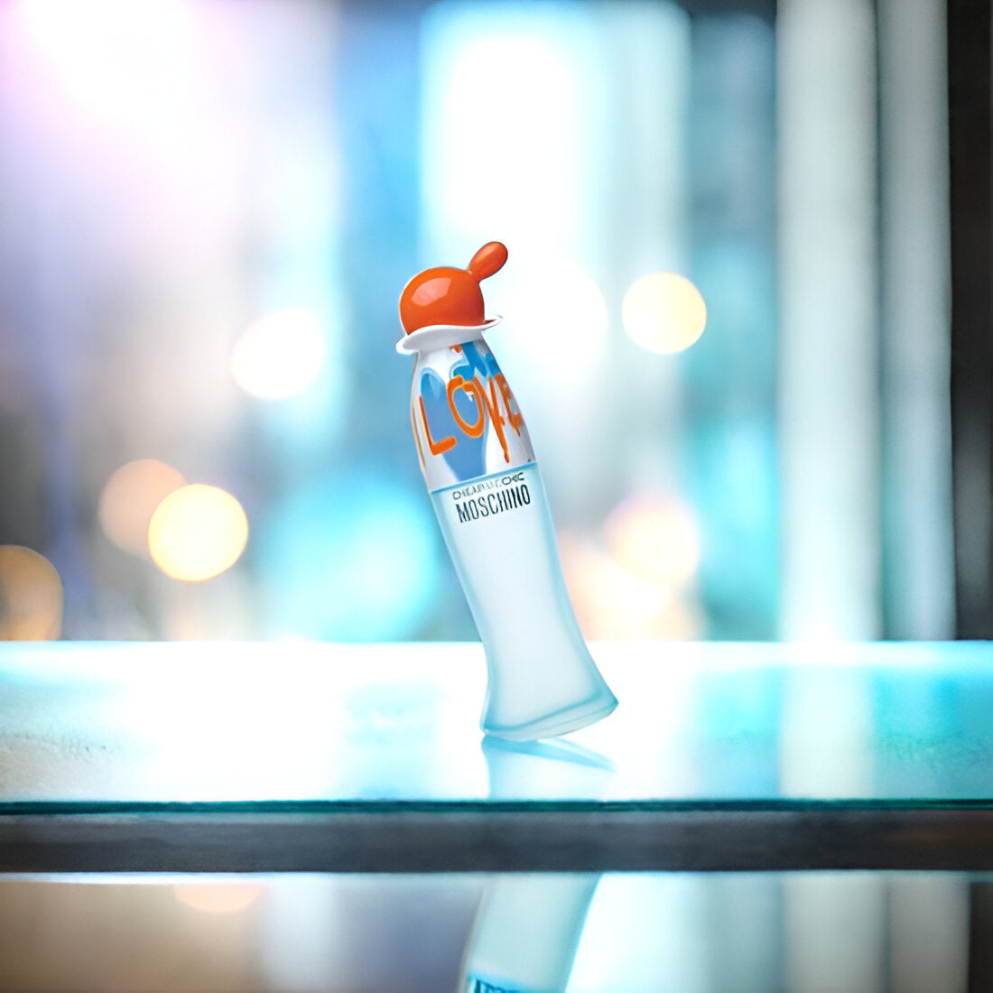 Moschino Cheap & Chic I Love Love EDT has a fresh and fruity scent with notes of citrus, sweet orange, and vibrant floral aromas, creating a lively and playful fragrance perfect for a cheerful day.
