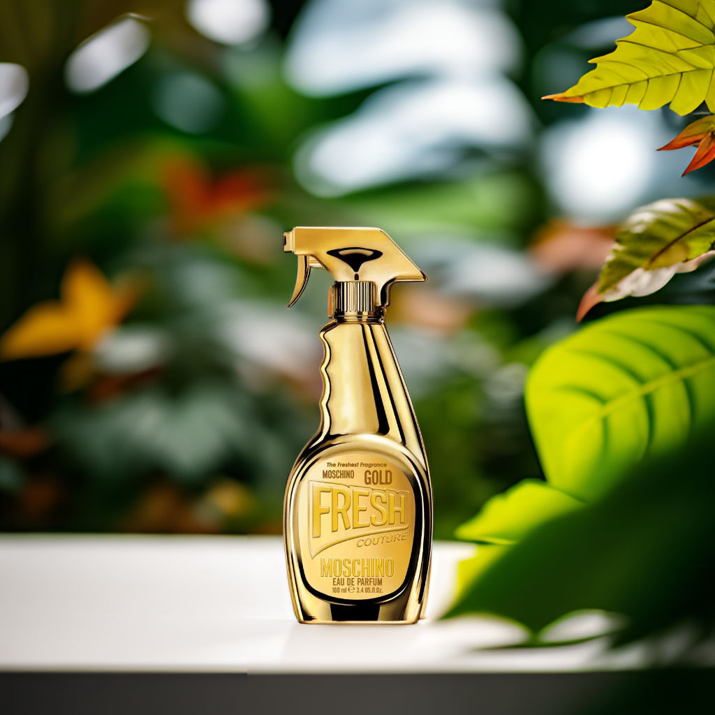 Moschino Fresh Gold Couture EDP has a sparkling, fresh scent with a touch of whimsy and elegance, embodying luxurious femininity.