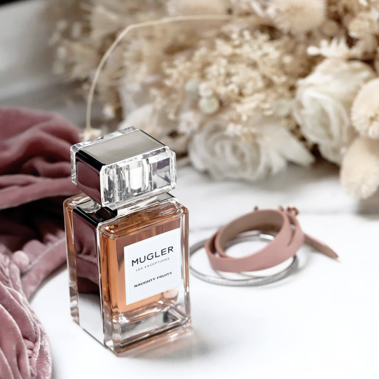 Indulge in the playful allure of Mugler Les Exceptions Naughty Fruity Eau de Parfum, a fragrance that defies conventions with its bold and irresistible charm.