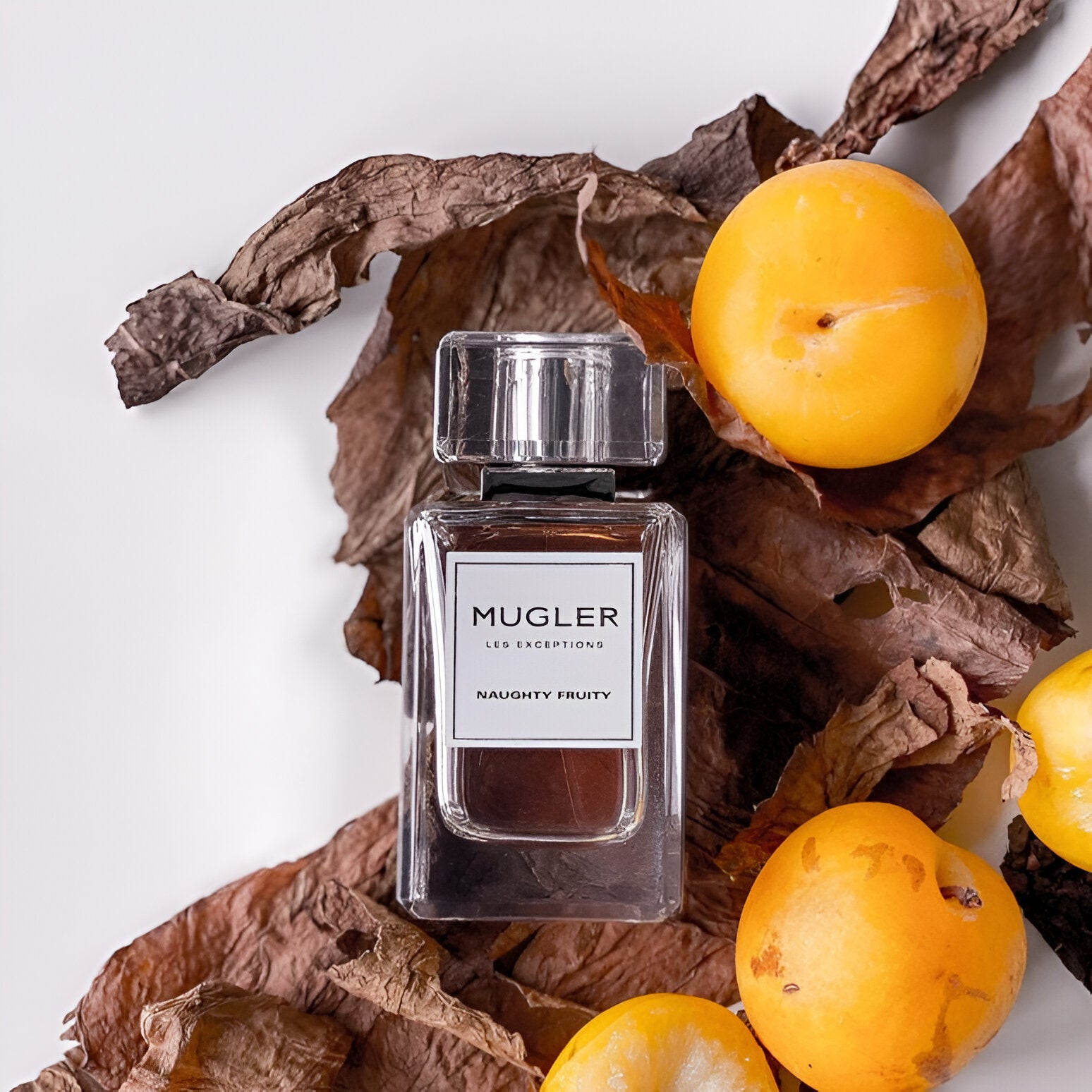 Mugler Les Exceptions Naughty Fruity EDP smells like a deliciously bold blend of mirabelle plum and fresh, colorful fruity notes with a hint of spice.