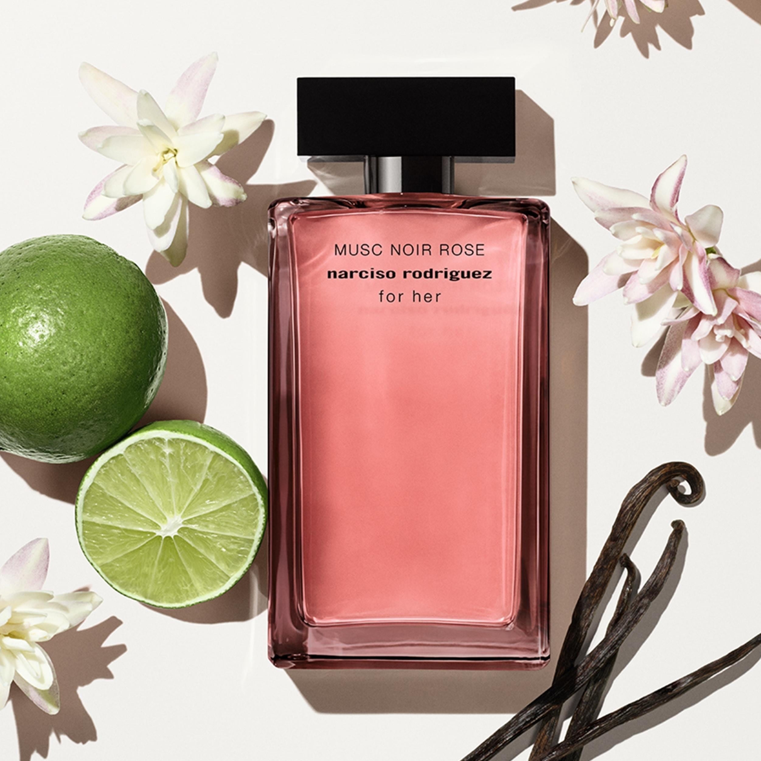 Narciso Rodriguez Musc Noir Rose For Her EDP smells like an alluring blend of plum, pink pepper, and bergamot, enveloped in an elegant rose and musk embrace.