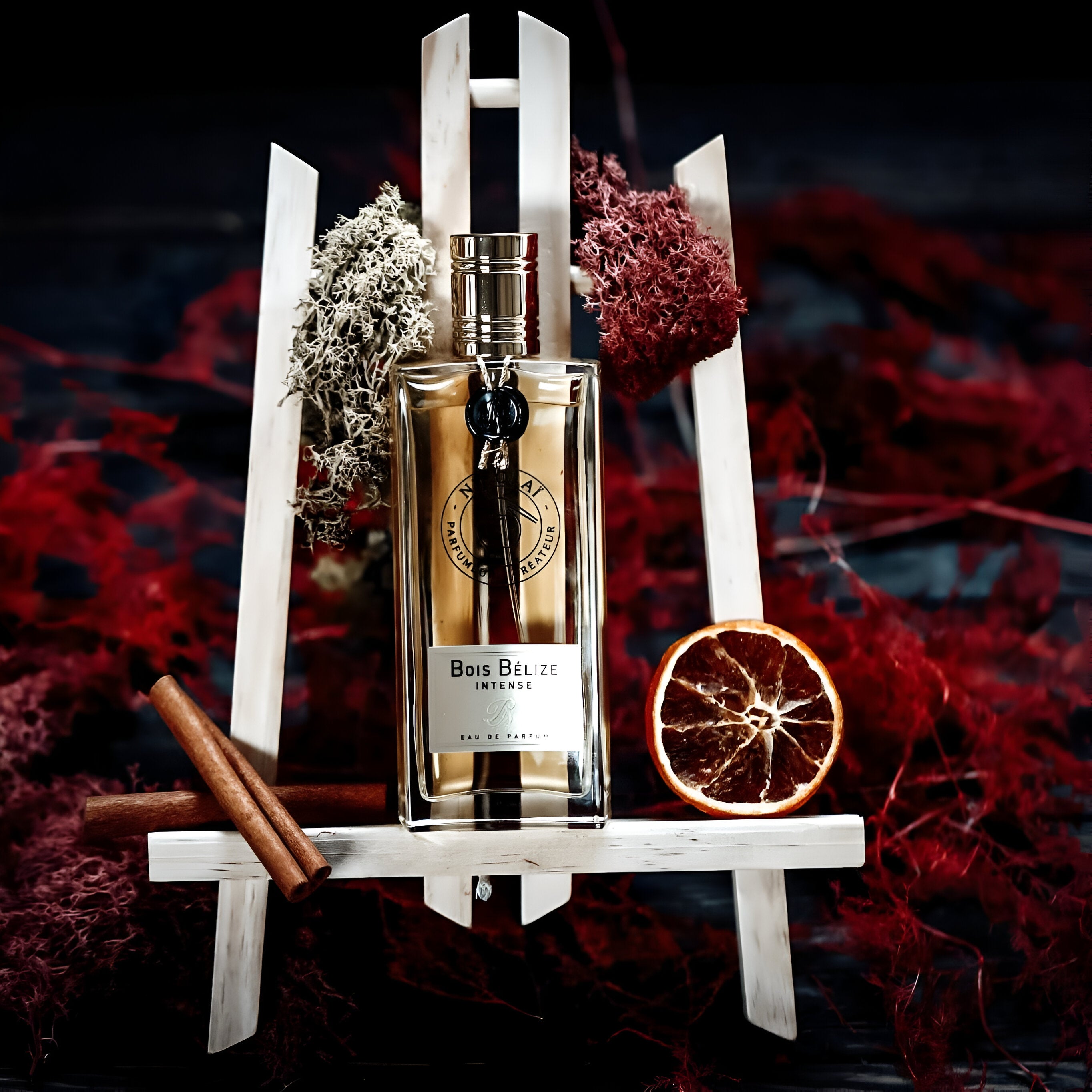 Nicolai Parfumeur Createur Bois Belize Intense EDP smells like an exotic blend of smoky tea and woody citrus, enriched with hints of rose, cardamom, and clove, transporting you to distant lands.
