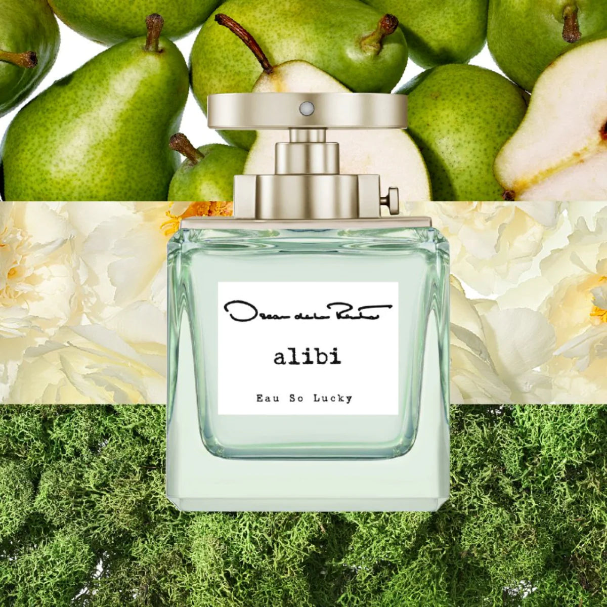 Oscar de la Renta Alibi Eau So Lucky smells like a bright floral-fruity blend of rose and peony with fresh green tea, spicy cardamom and clary sage, finishing warm and sweet with cedarwood, moss, praline, and musk.