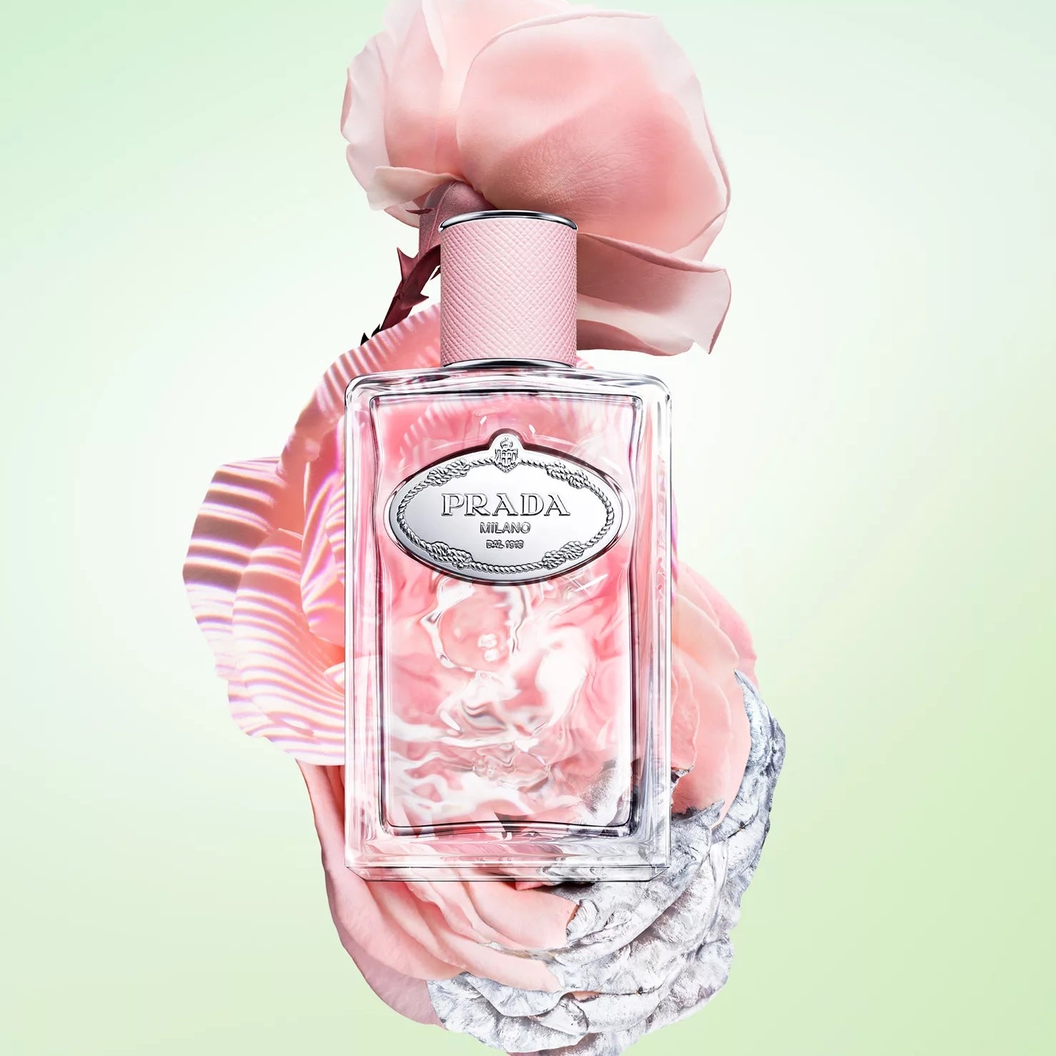 Embrace the luxurious paradox of Prada Les Infusions De Rose Eau De Parfum, a fragrance that conjures the timeless essence of blooming roses.