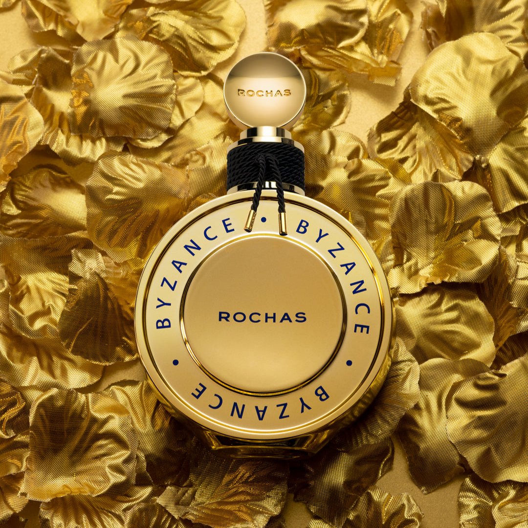 Rochas Byzance Gold EDP smells warm and luxurious, featuring rich notes of amber, sweet vanilla, and a hint of floral and fruity elements that create an inviting and sophisticated aroma.