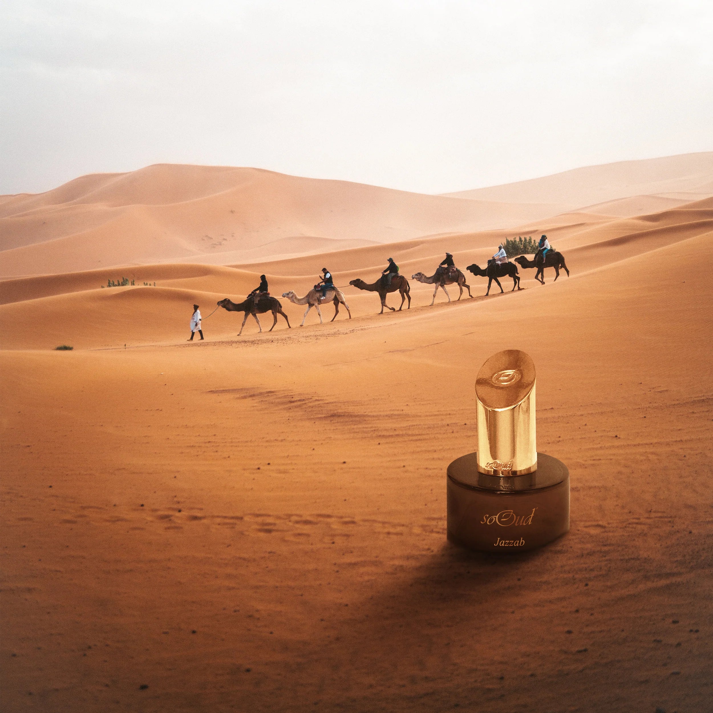 SoOud Jazzab Eau Fine smells like a captivating blend of sweet resins, amber florals, and rich oud, creating a mesmerizing unisex fragrance that lingers beautifully.