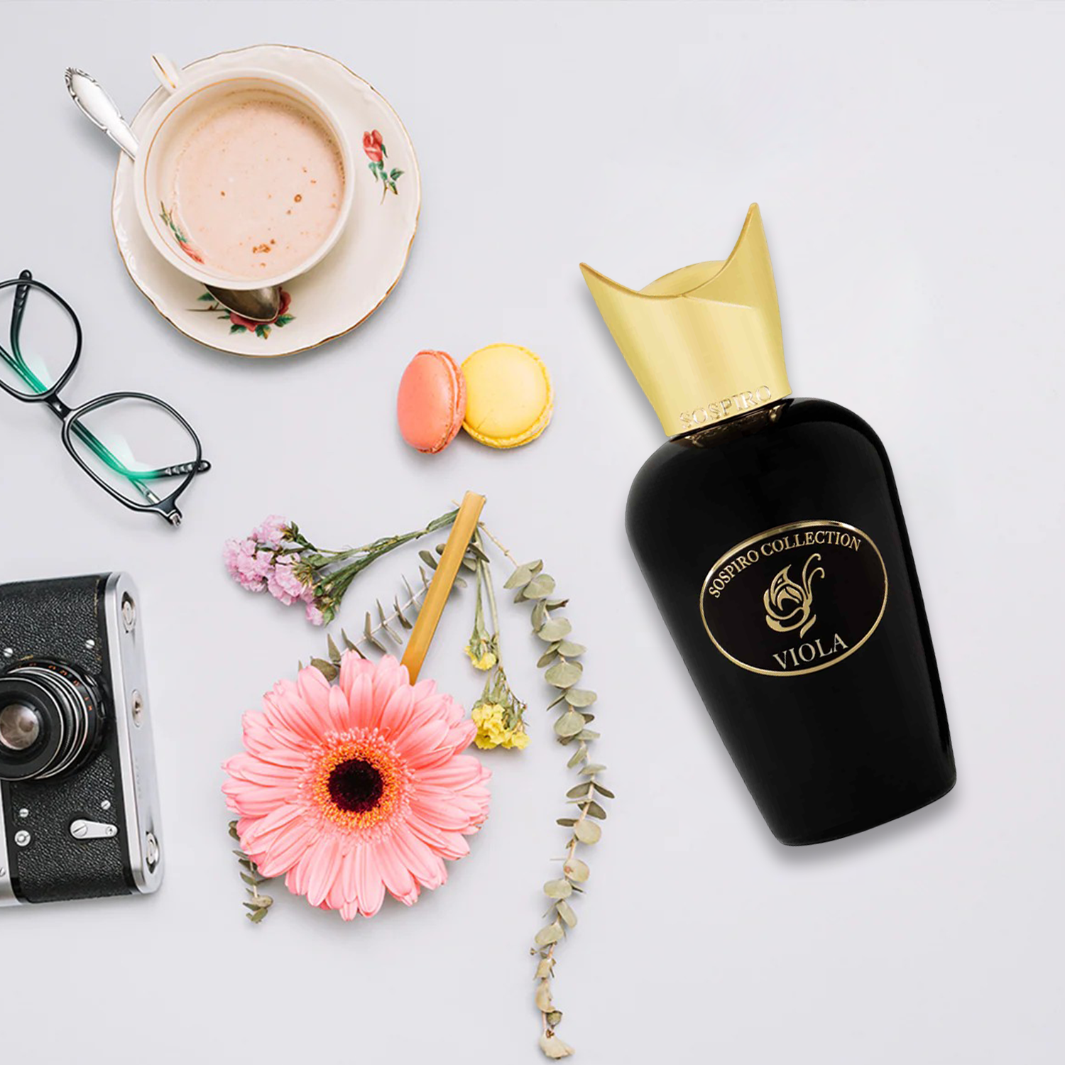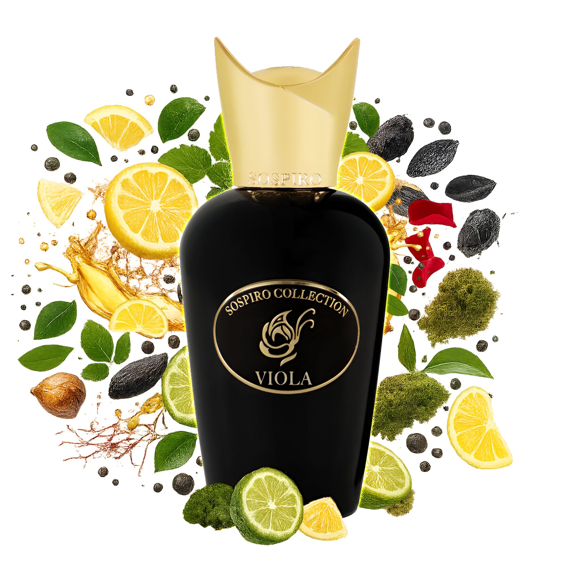 Sospiro Viola EDP is an aromatic amber-woody fragrance that opens with bright citrus and herbaceous top notes. It balances spicy, resinous heart accords with a warm, woody base for a refined, enveloping trail.