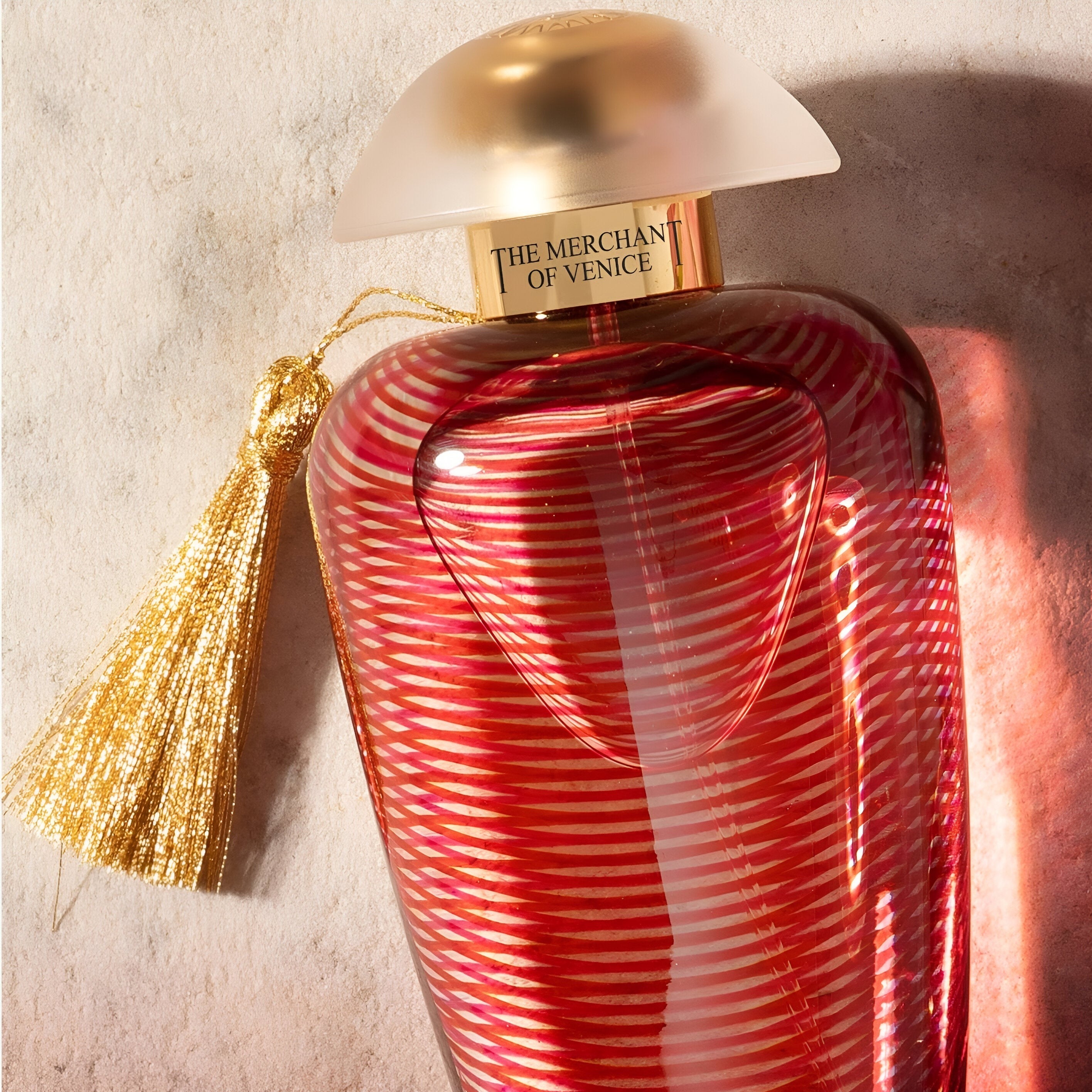 Embark on a fragrant journey inspired by the historical Muda della Tana e di Romania with The Merchant Of Venice Murano Collection Byzantium Saffron EDP.