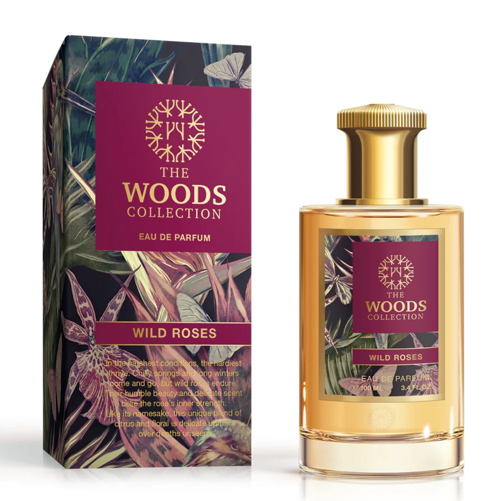 The Woods Collection Wild Roses EDP smells like a beautiful blend of wild roses and jasmine, layered with warm amber and earthy notes of patchouli and woods, evoking the enchanting essence of North America's serene forests.