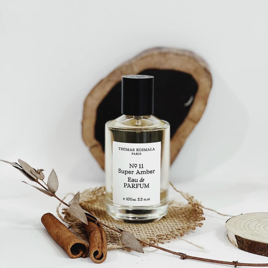 Thomas Kosmala No.11 Super Amber EDP has a warm, spicy amber scent with woody and musky undertones, hints of citrus from bitter orange blossom and lemon, and a touch of aromatic spices. It's inspired by Middle-Eastern oud.