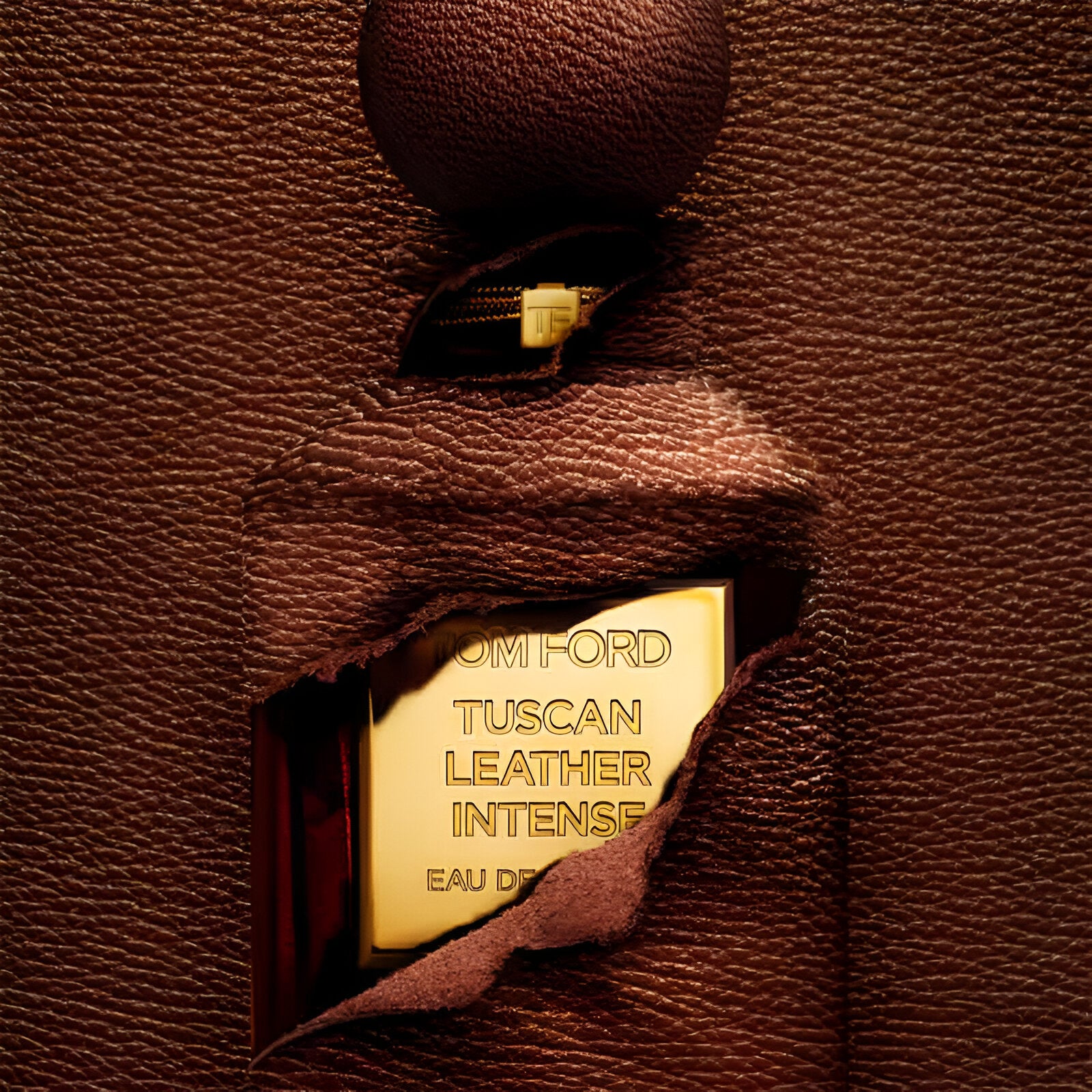 Tuscan Leather Intense EDP smells of deep leather with hints of olibanum, jasmine, and black suede, creating a raw yet sophisticated scent.