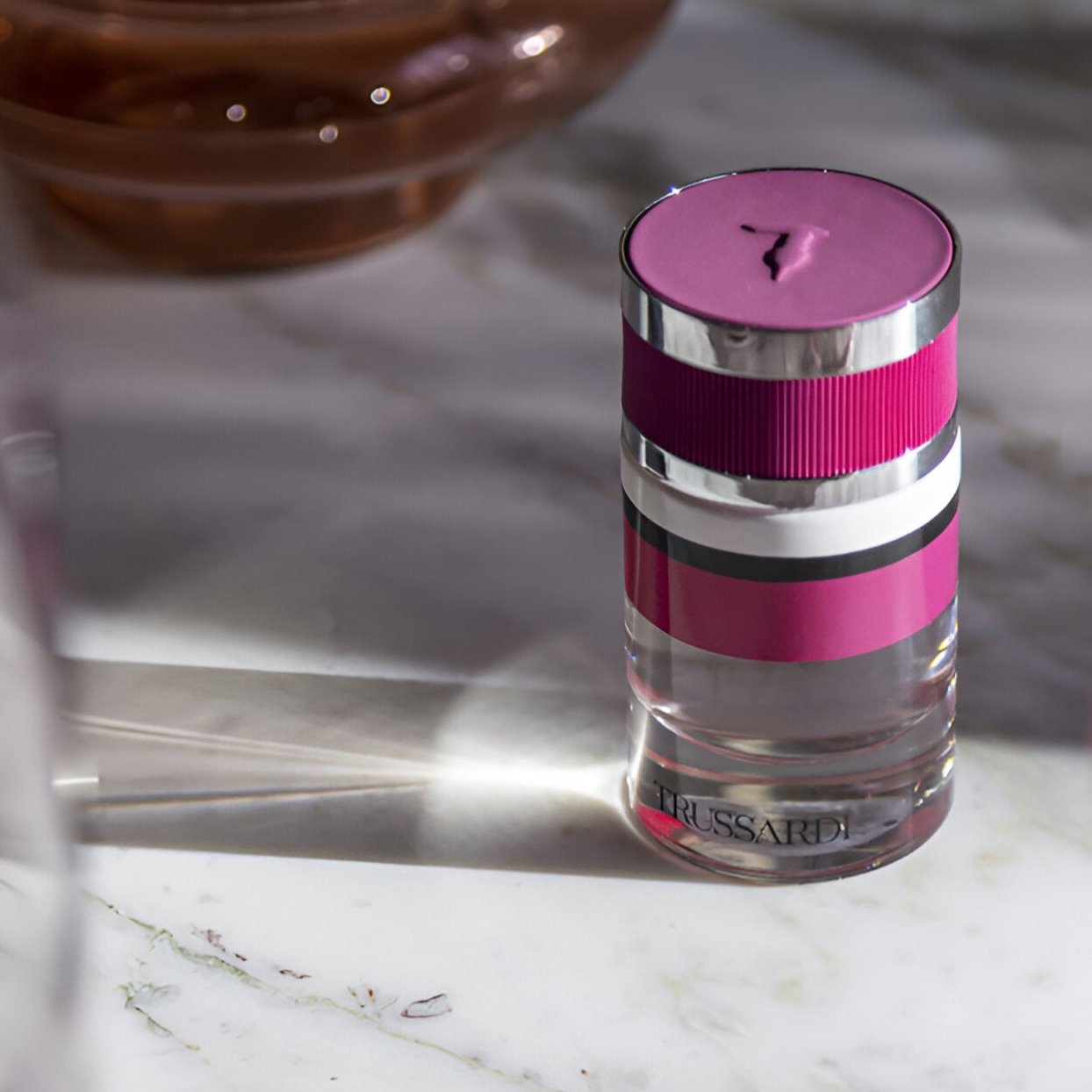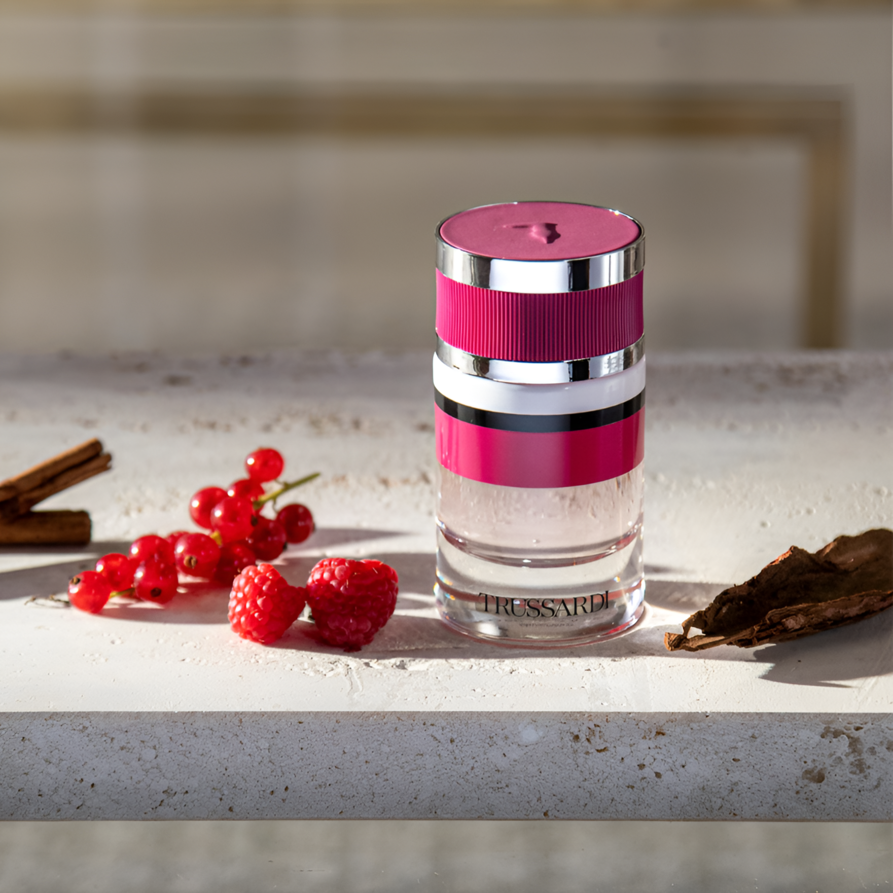 Trussardi Ruby Red EDP has a warm and seductive scent featuring notes of ripe fruits, elegant florals, and a hint of sweet vanilla, creating a luxurious and captivating fragrance.
