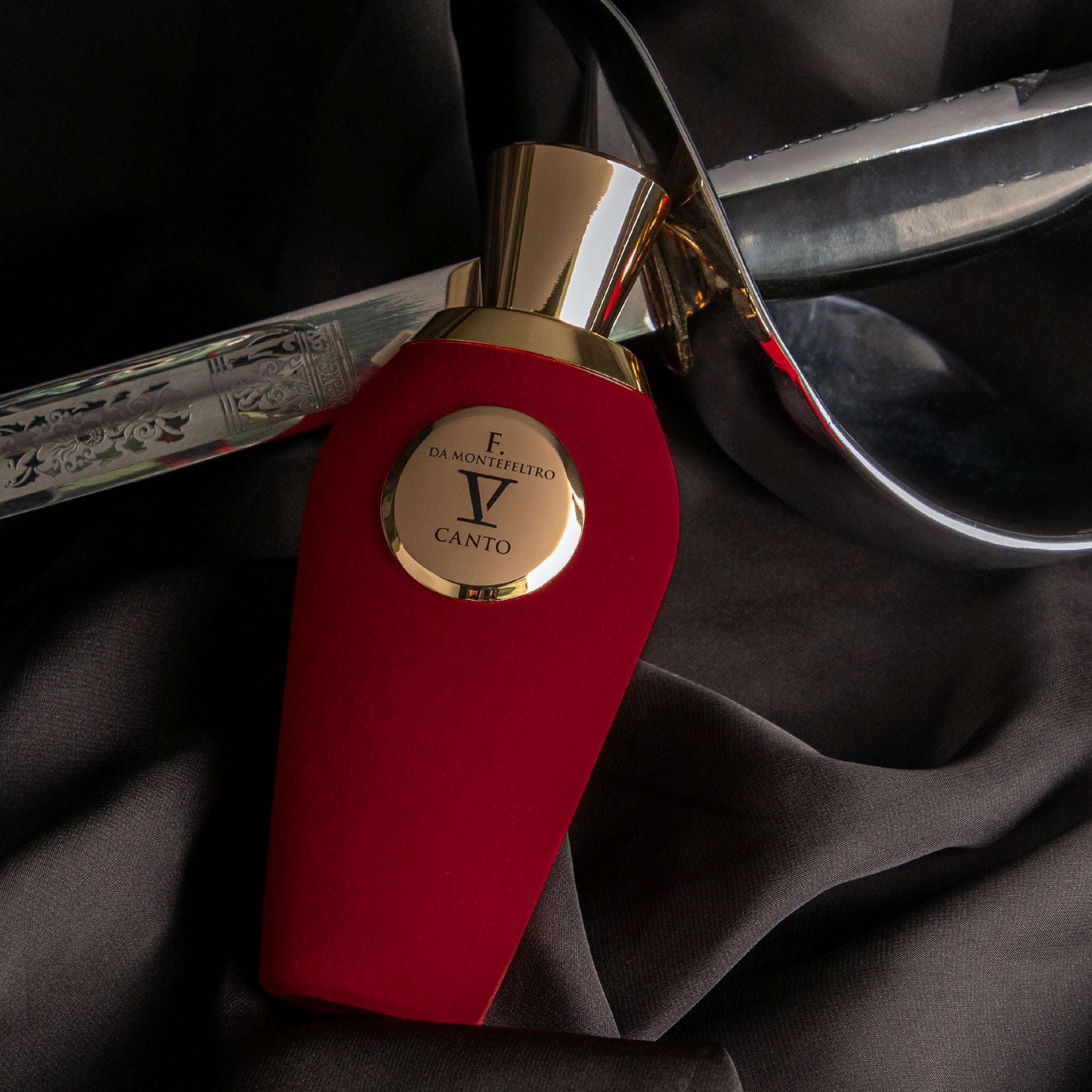 V Canto F. Da Montefeltro Extrait De Parfum captures the regal and cunning spirit of Duke Federico da Montefeltro in a sweet, fruity scent that pays homage to the rich tapestry of historical strength and sophistication.