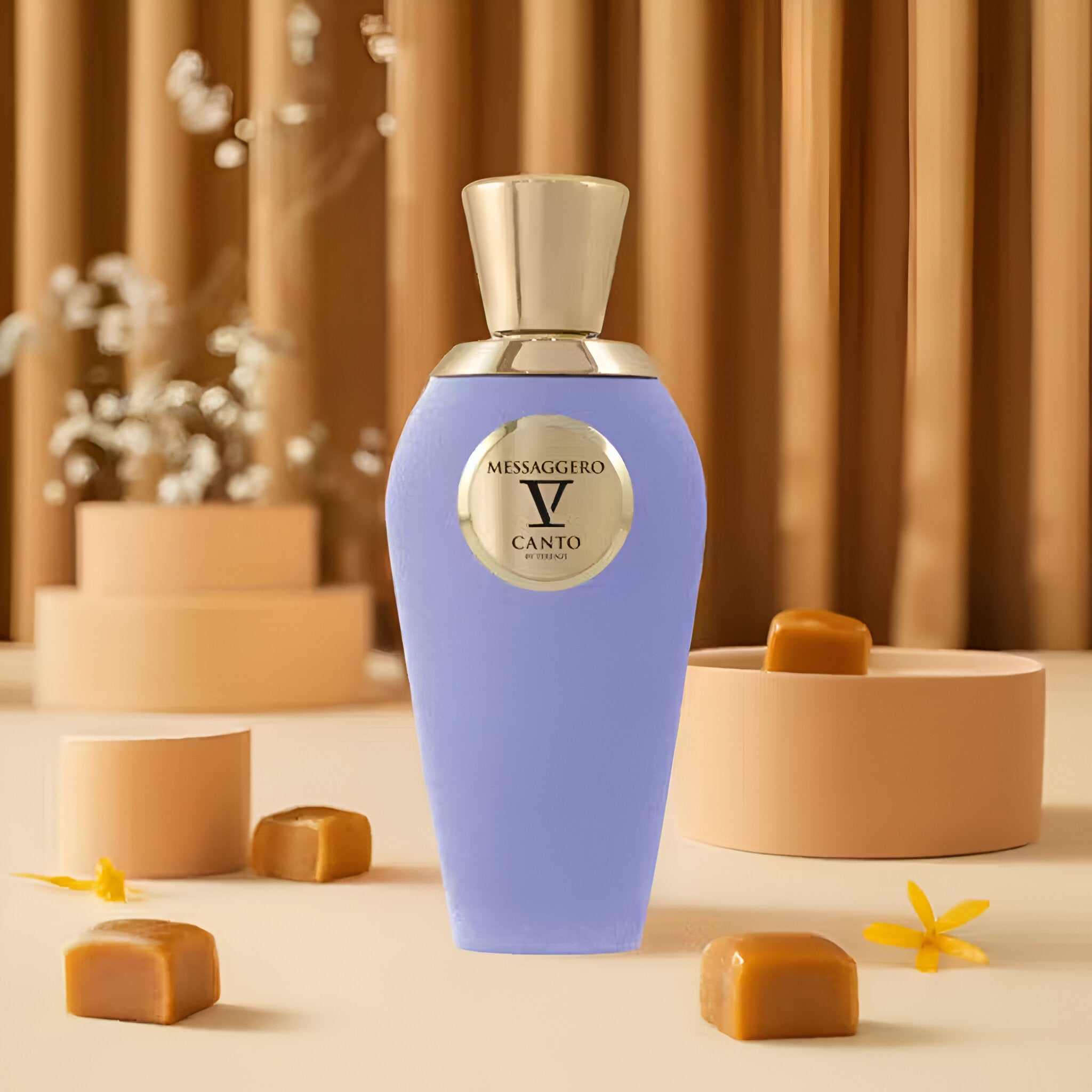 V Canto Messaggero Extrait De Parfum smells like a rich blend of warm spices, sweet vanilla, and smooth woods, creating an enchanting and comforting aroma.