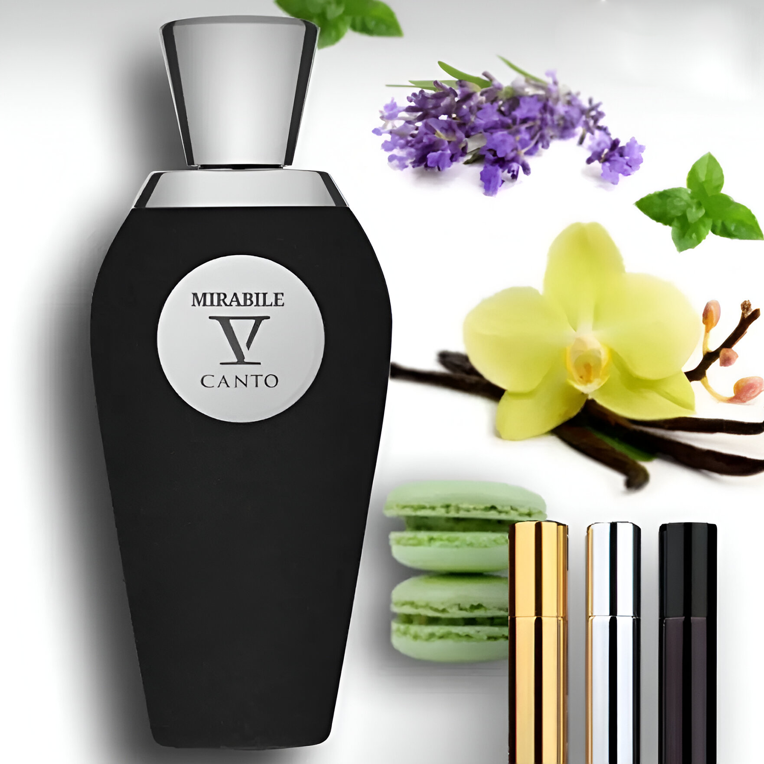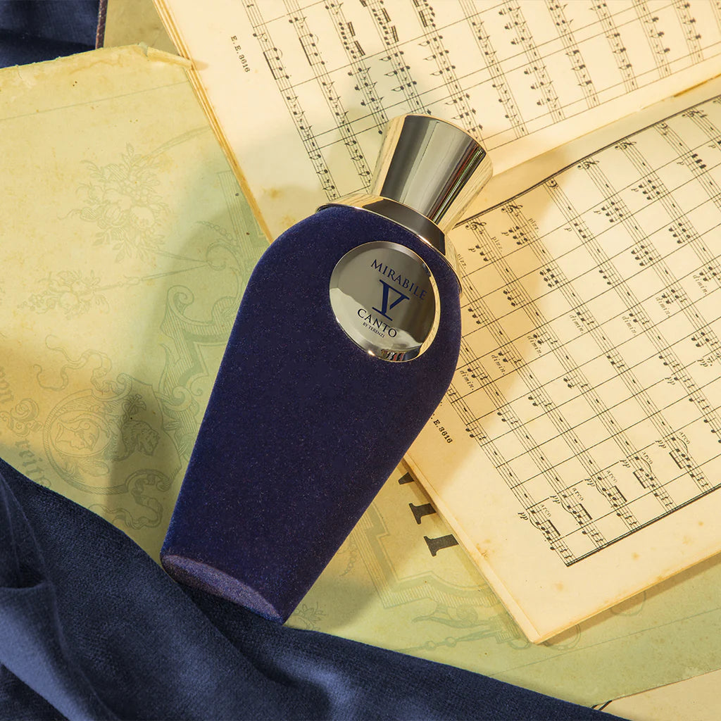 V Canto Mirabile Extrait De Parfum smells like a luxurious blend of sweet and spicy notes, featuring rich vanilla, warm amber, and a hint of exotic florals that create an enchanting and memorable scent.