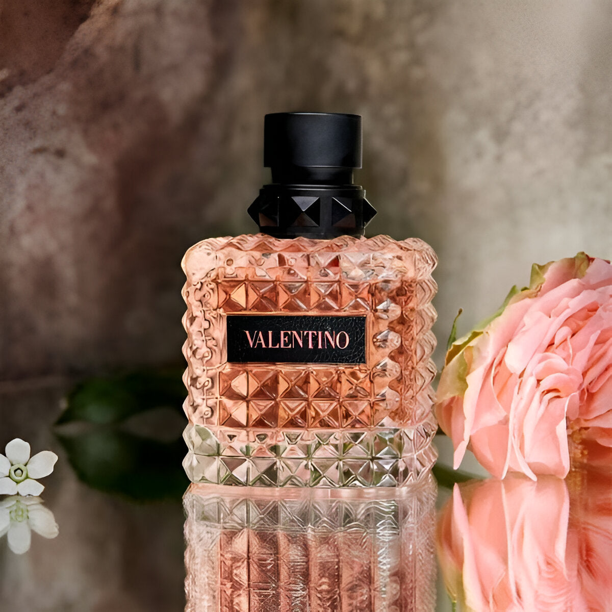 Valentino Donna Born In Roma Coral Fantasy EDP smells like a magical blend of sweet kiwi, fresh jasmine, and warm vanilla, capturing the enchanting feeling of a Roman sunset.