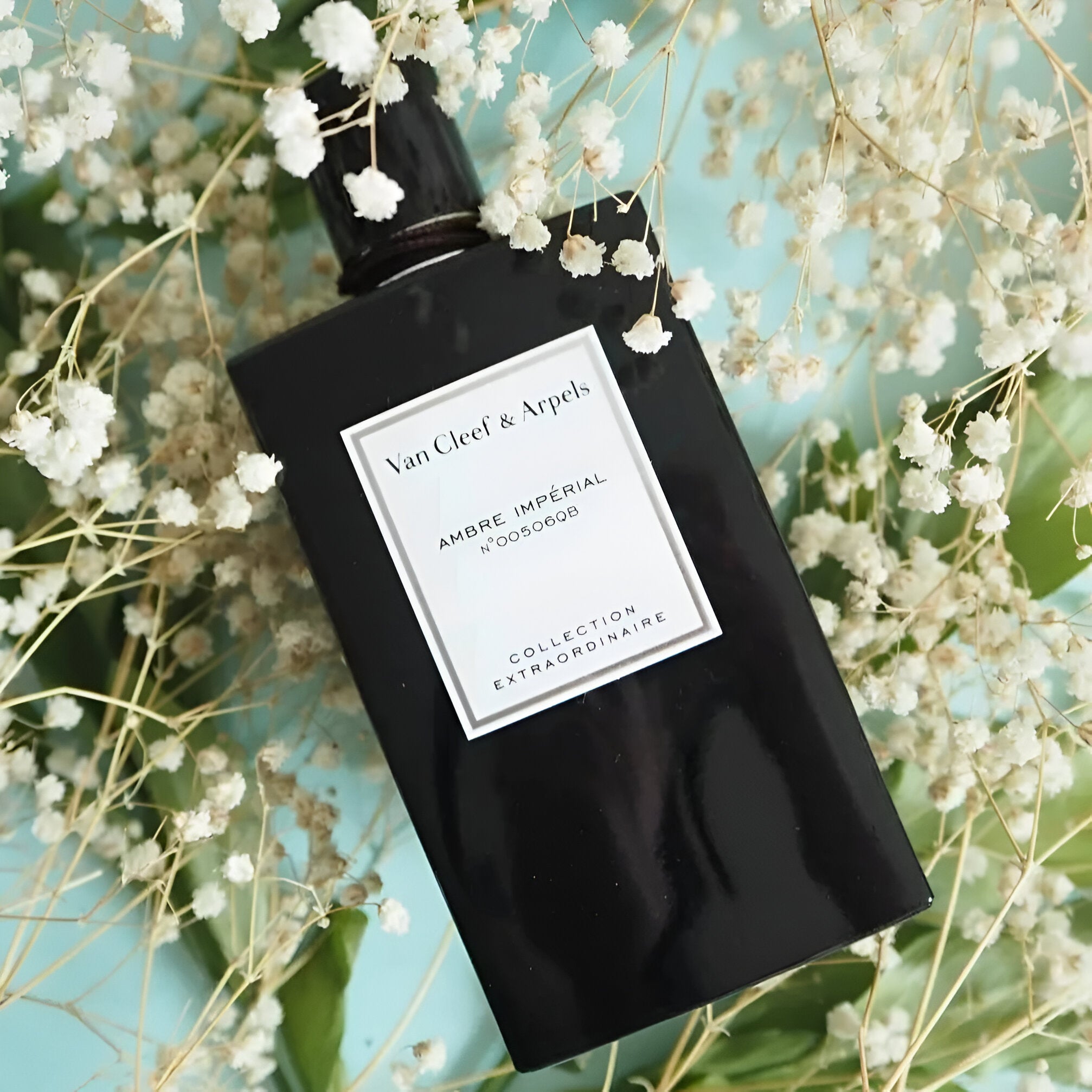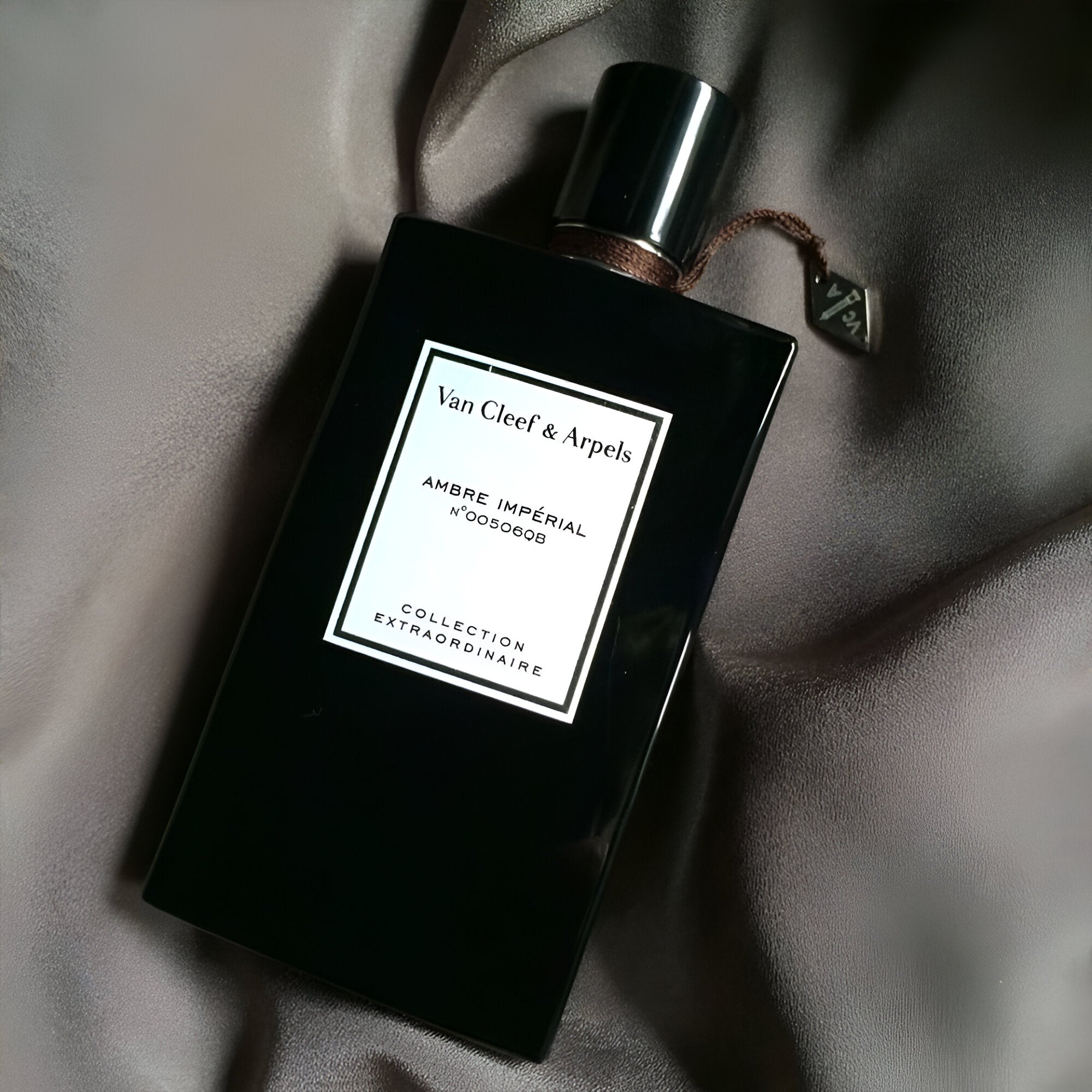 Van Cleef & Arpels' Ambre Impérial EDP exudes a luxurious blend of pink pepper, bergamot, and warm amber, capturing the essence of the Orient in an elegantly crafted scent by master perfumer Quentin Bisch.