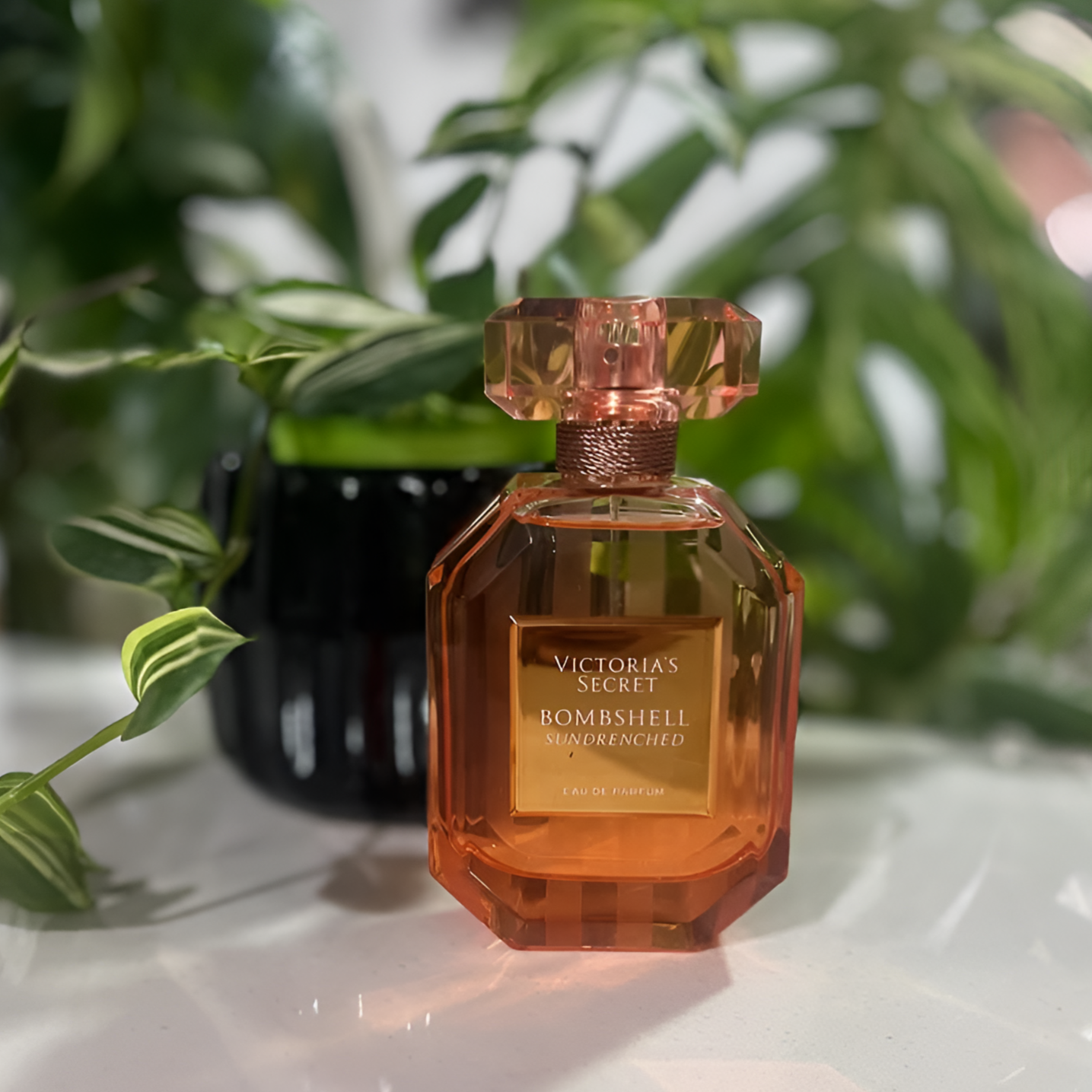 Victoria's Secret Bombshell Sundrenched EDP smells like a sunny beach day, blending bright coconut water with blooming coral peonies, sweet guava blossoms, and warm sands to create a playful and confident fragrance perfect for summer.