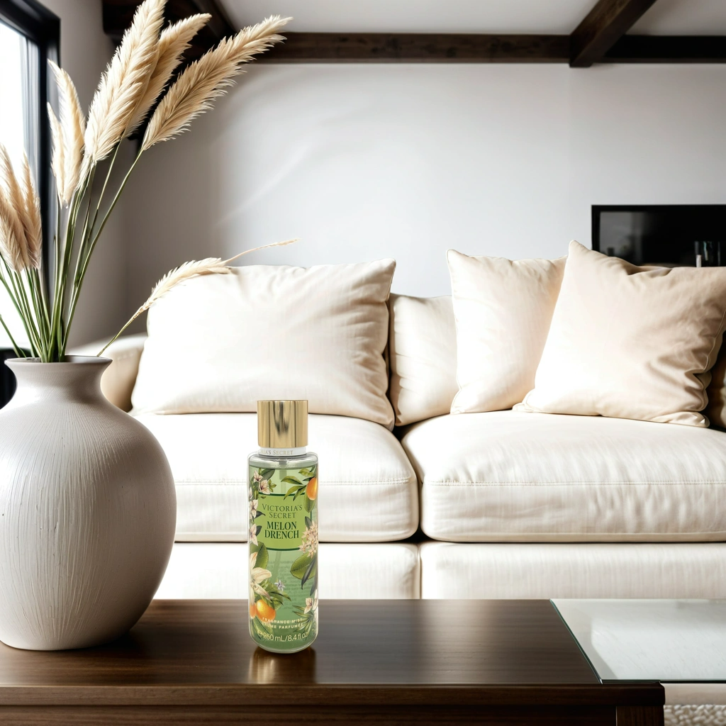 Victoria's Secret Melon Drench Fragrance Mist smells like a refreshing blend of sweet melon, tropical pineapple, and kiwi, perfect for a daily fruity escape.